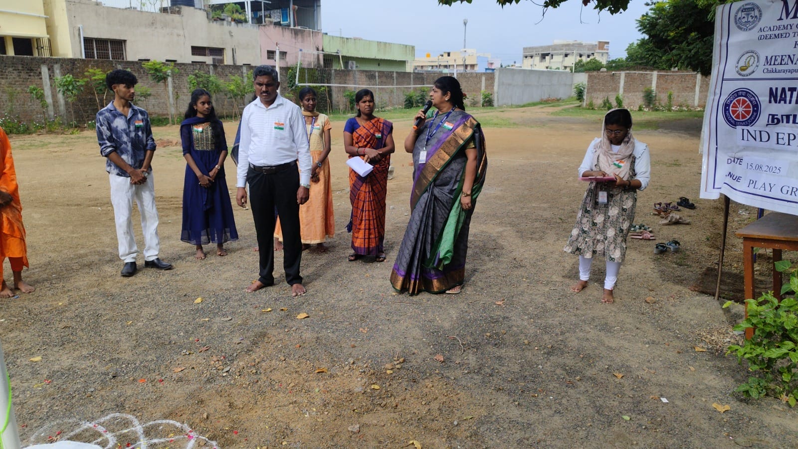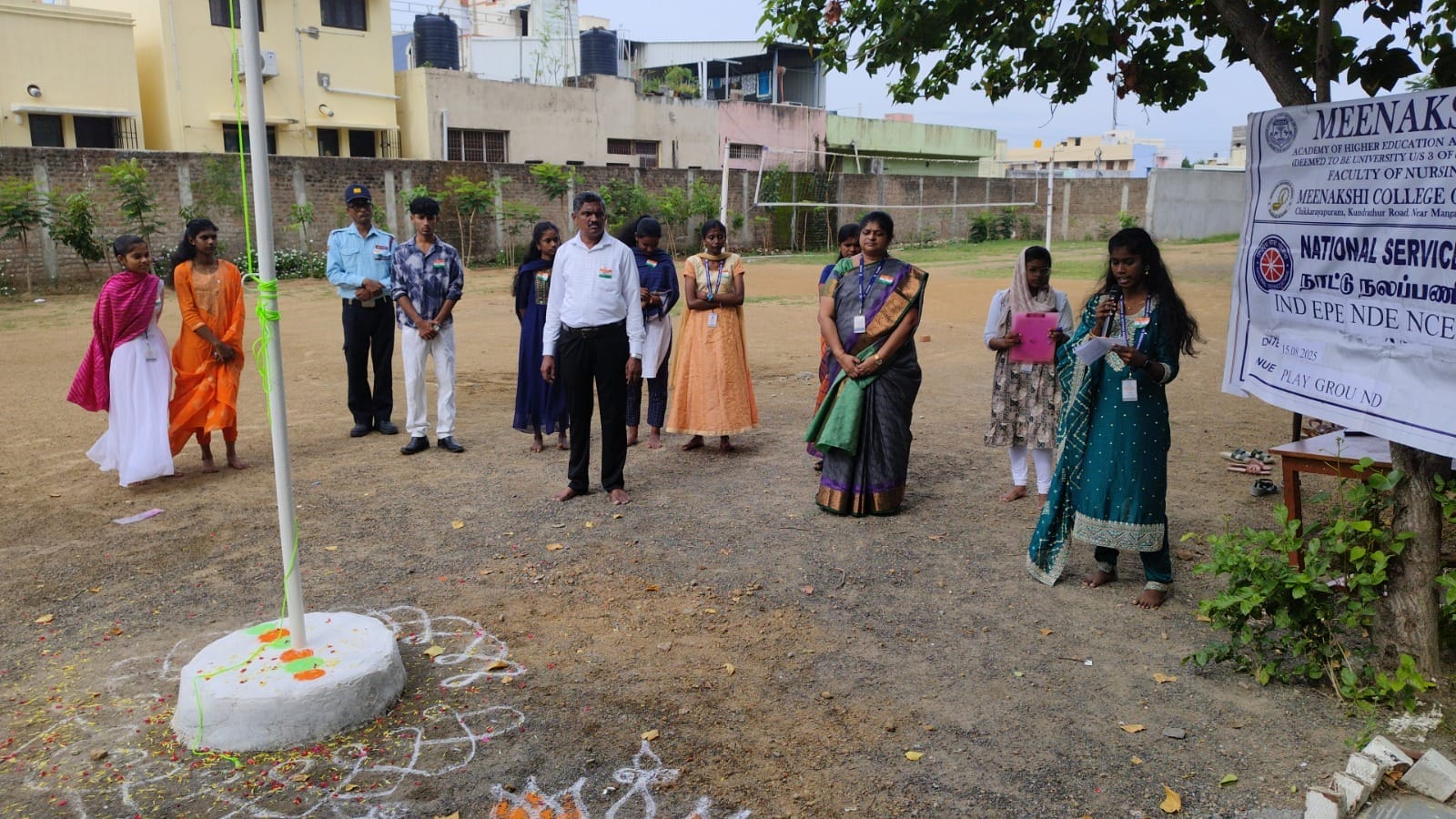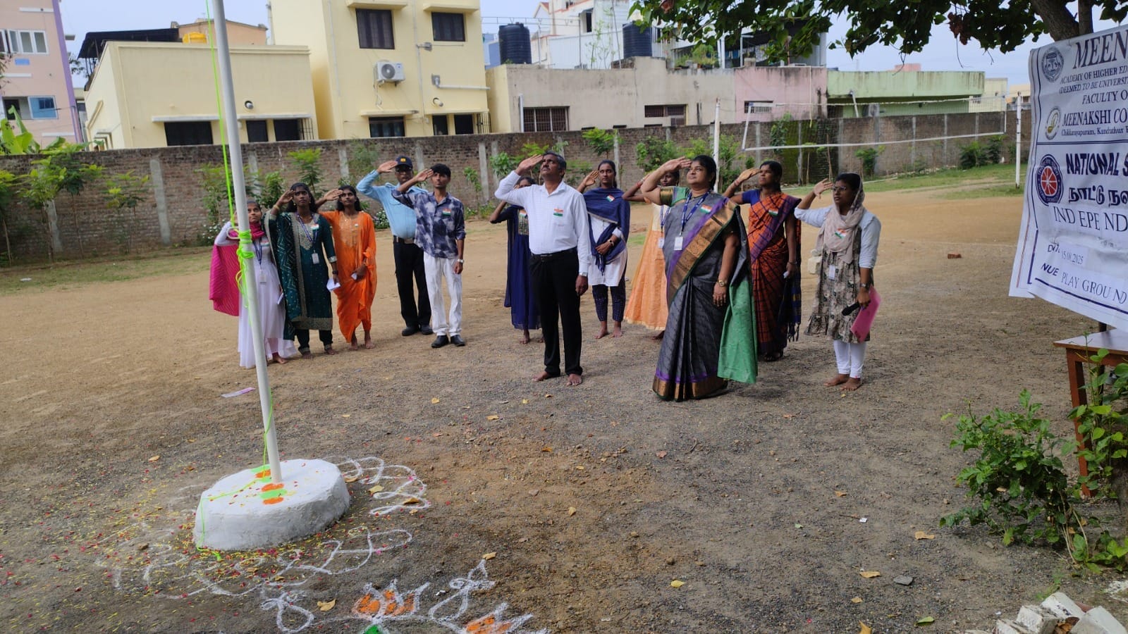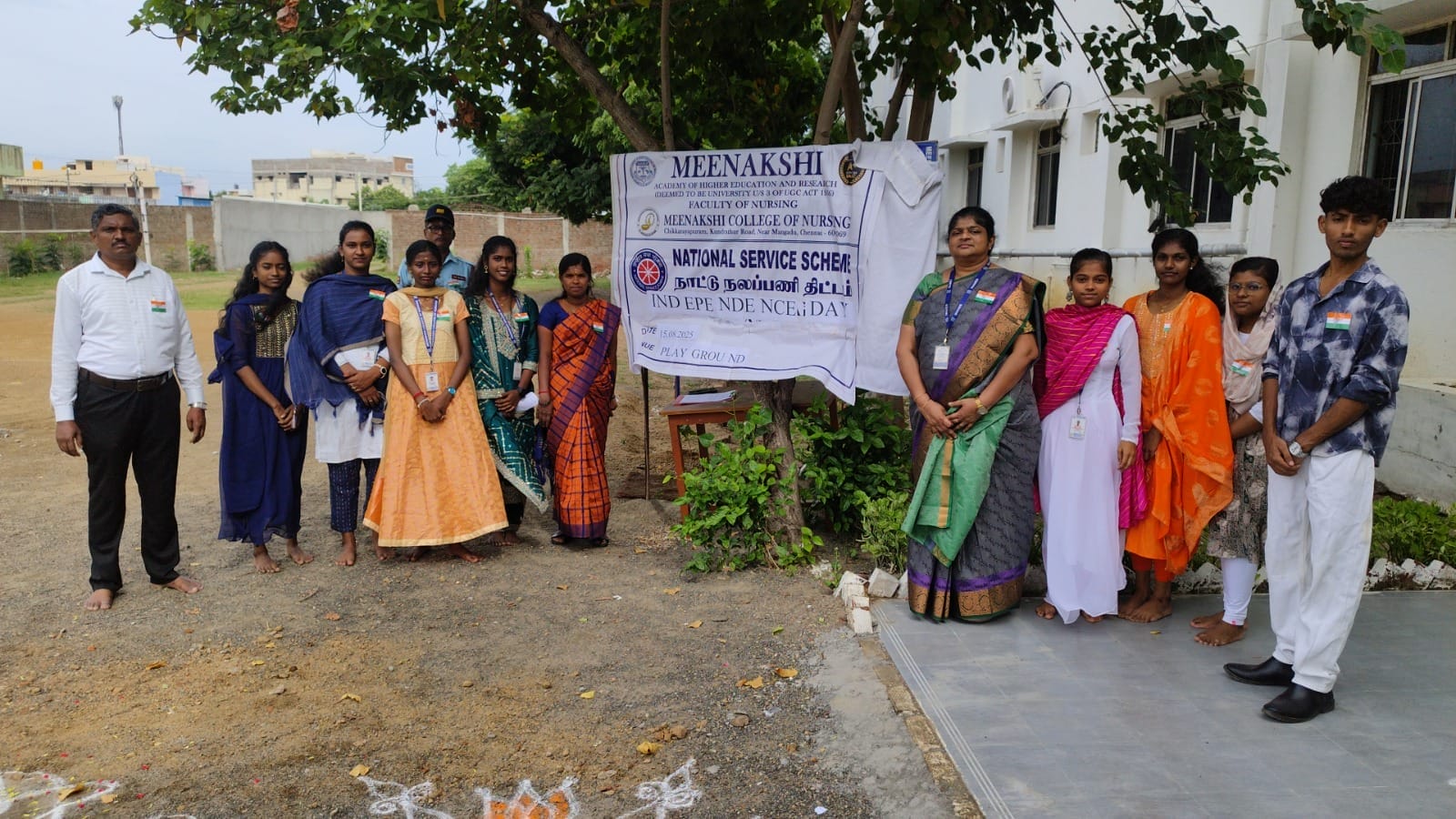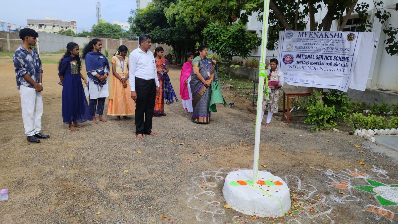 The NSS Unit of Meenakshi College of Nursing (MCON), Chennai, celebrated the 79th Independence Day on 15th August 2025 with great enthusiasm and national pride. The program commenced at 7:30 AM with an invocation rendered by the B.Sc. (Nursing) students, creating a solemn and inspiring start to the occasion.