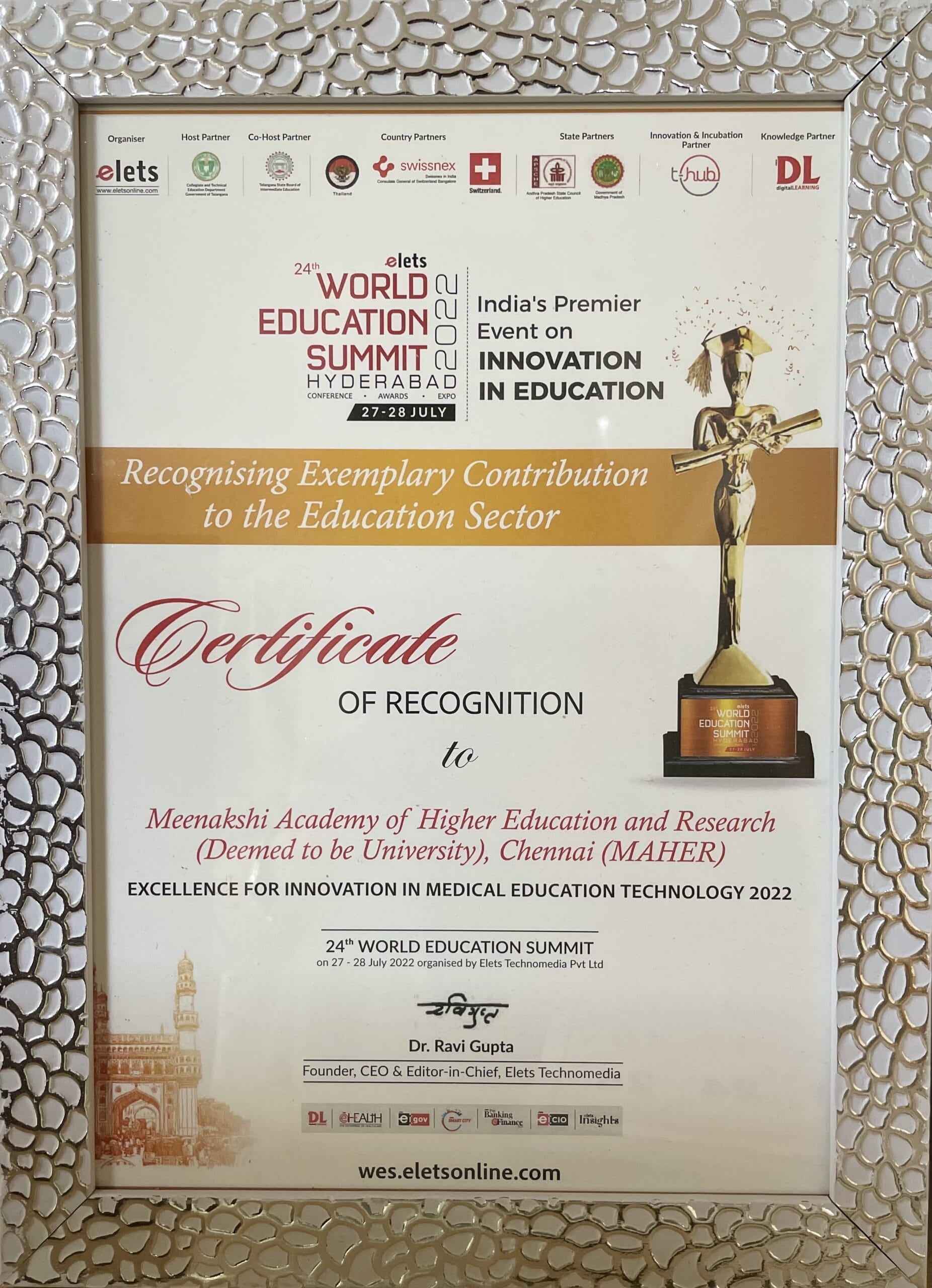 Meenakshi Academy of Higher Education and Research was also ranked as the Asia’s Greatest Brands for the year 2020-21