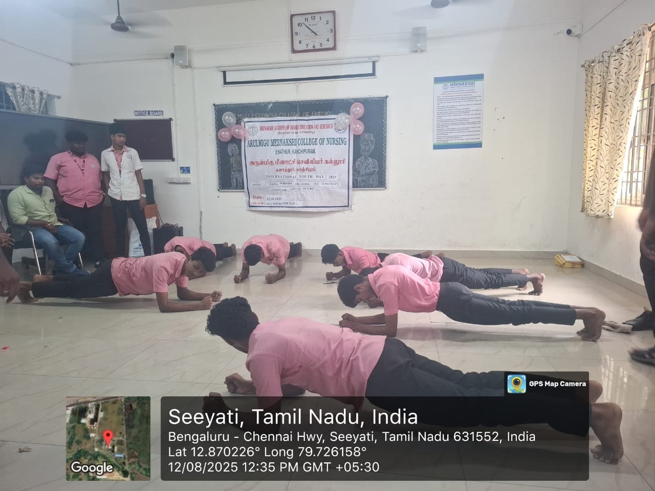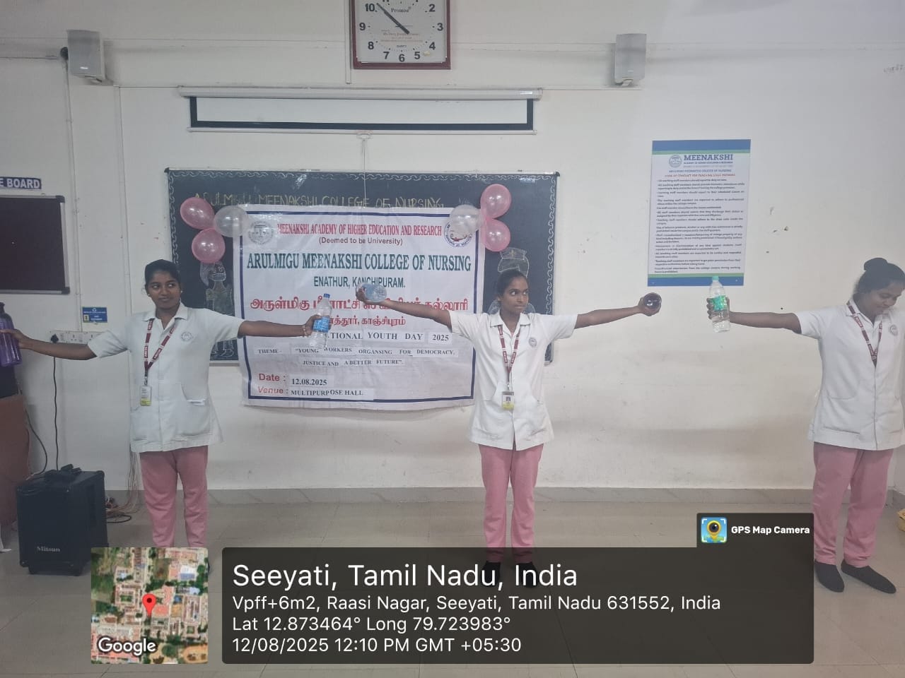 Arulmigu Meenakshi College of Nursing (AMCON) celebrated International Youth Day on 12th August 2025 from 9:00 AM to 2:00 PM at the Multi-Purpose Hall, MMCH&RI campus. The event brought together students and faculty members to promote physical fitness, teamwork, and the spirit of sportsmanship.