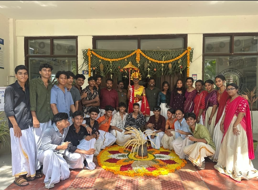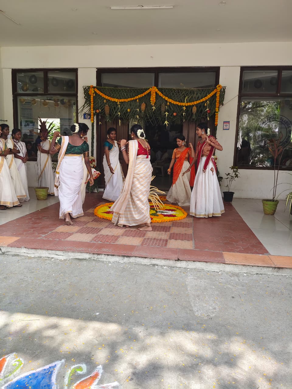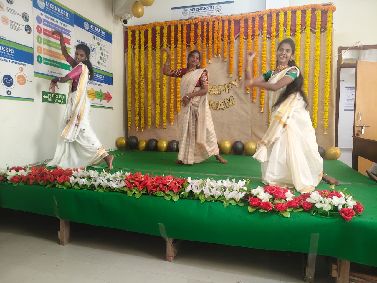 The celebration commenced with the traditional Thiruvathirai Kali performed by B.Sc. (N) students, setting a festive tone for the program. This was followed by a Welcome Address by Ms. G. Gowthami, VI Semester, B.Sc. (N), and a graceful Welcome Dance by Ms. Sathya, IV Year, B.Sc. (N).
