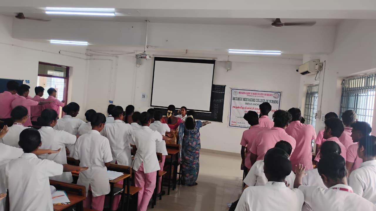 The Ministry of Social Justice and Empowerment, Government of India, under the guidance of the University Grants Commission (UGC), spearheaded the nationwide observance of the “Ageing with Dignity” initiative, which was held at Arulmigu Meenakshi College of Nursing (AMCON) on 16th September 2025 at the Multipurpose Hall.