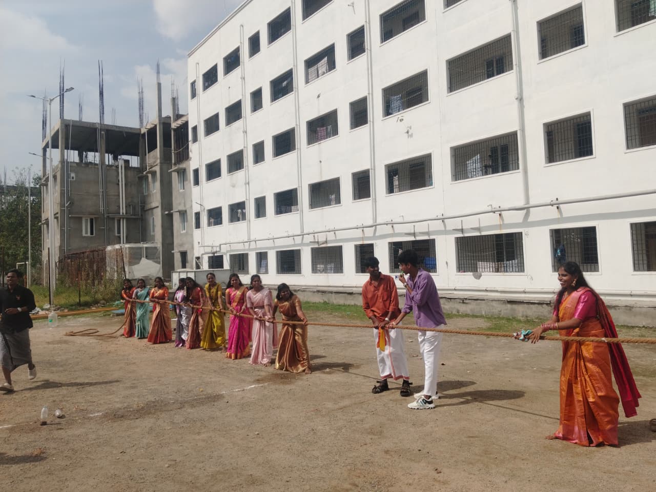 The celebration featured a wide range of engaging on-stage and off-stage events such as Uri Adi, Rangoli, Musical Chair, Murukku Eating, Tug of War, Water Filling, Lucky Draw, and Arm Wrestling, encouraging energetic participation and camaraderie among students. A thought-provoking debate on the topic “பொங்கல்: இன்றைய இளைஞர்களுக்கு விழாவா! விடுமுறையா!” drew enthusiastic involvement from students across all batches, adding an intellectual dimension to the festivities.