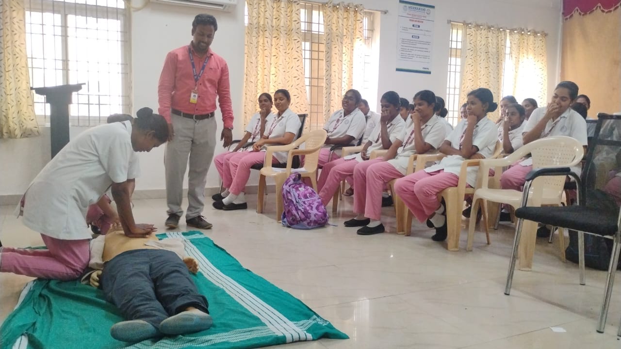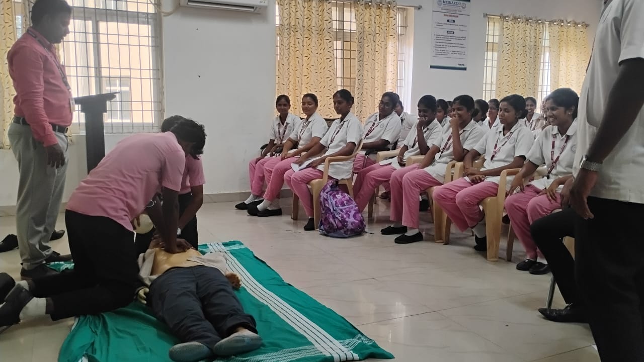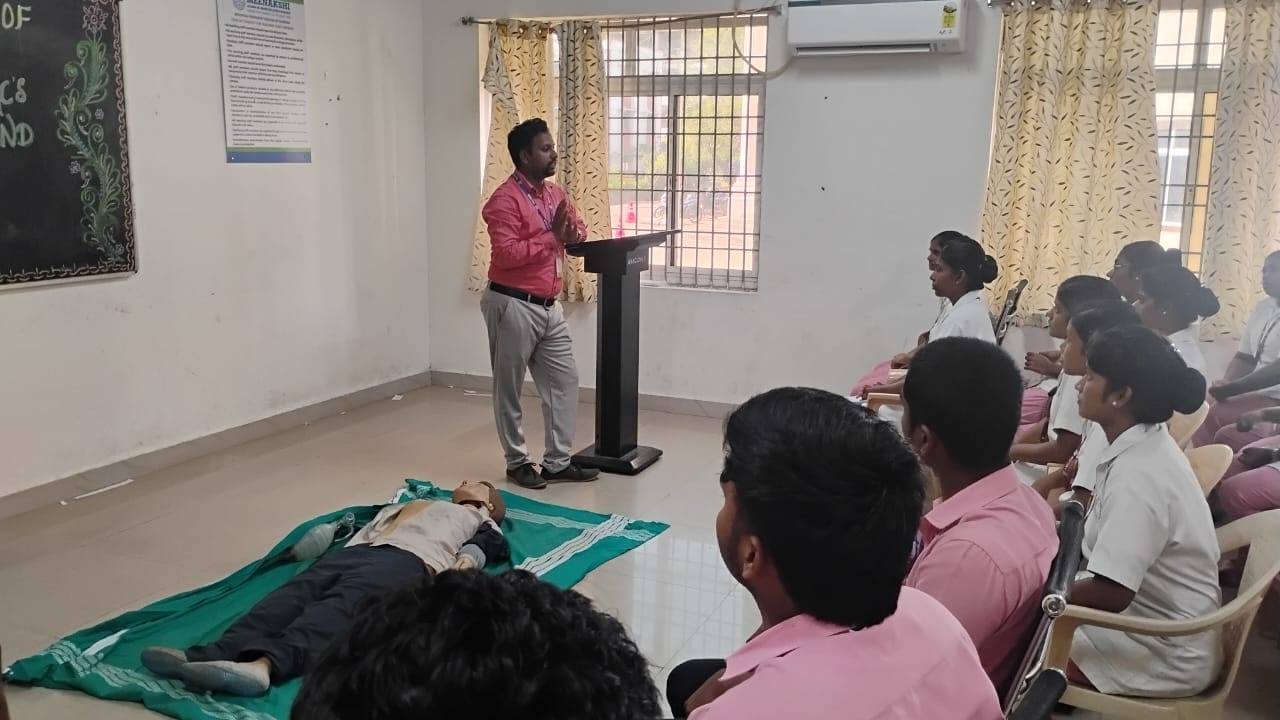 Arulmigu Meenakshi College of Nursing organized a First Aid and CPR Mock Drill on 16th September 2025 to enhance students’ knowledge and skills in handling medical emergencies effectively.