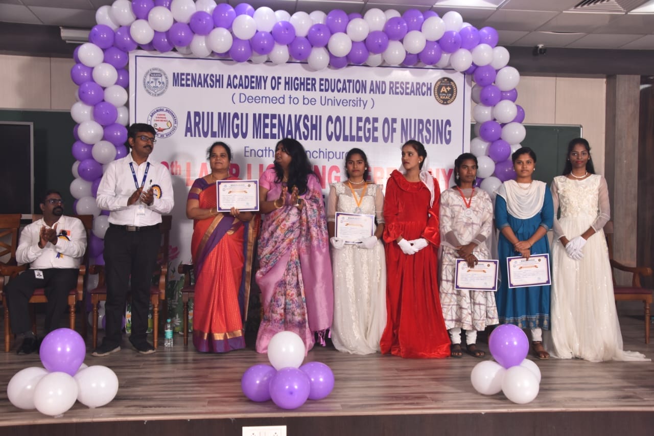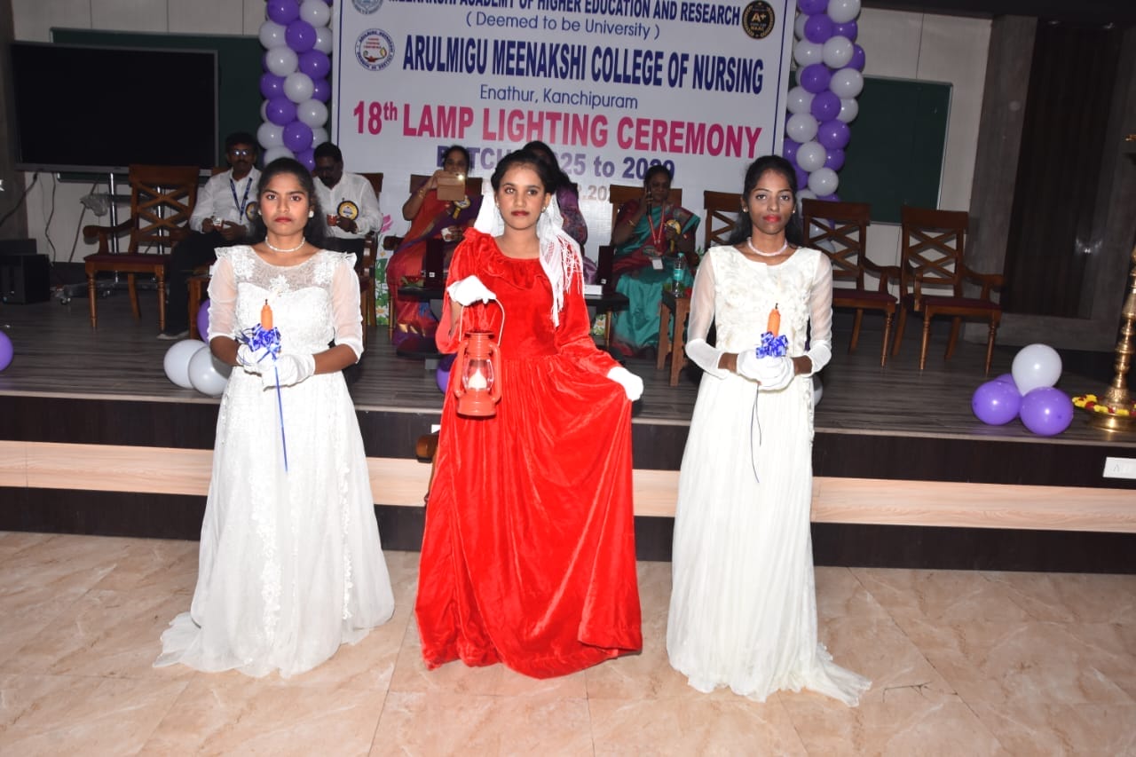 The Student Nurses Association of Arulmigu Meenakshi College of Nursing solemnly organized the 18th Lamp Lighting Ceremony for the B.Sc. (Nursing) students on 17 December 2025, marking a significant milestone in the academic and professional journey of aspiring nurses. This time-honoured ceremony, deeply rooted in the legacy of Florence Nightingale, symbolized the formal induction of students into the noble profession of nursing and reaffirmed core values such as compassion, dedication, ethical practice, and selfless service to humanity.
