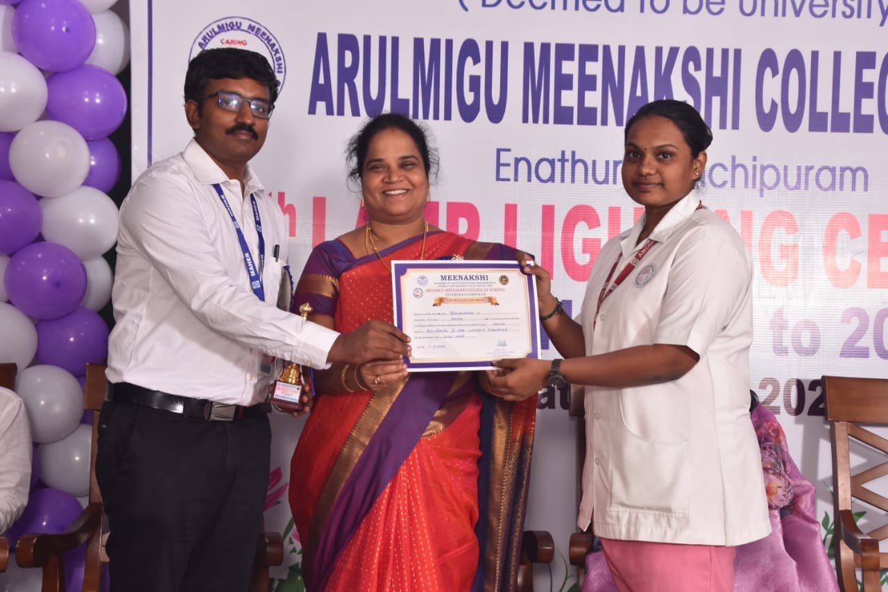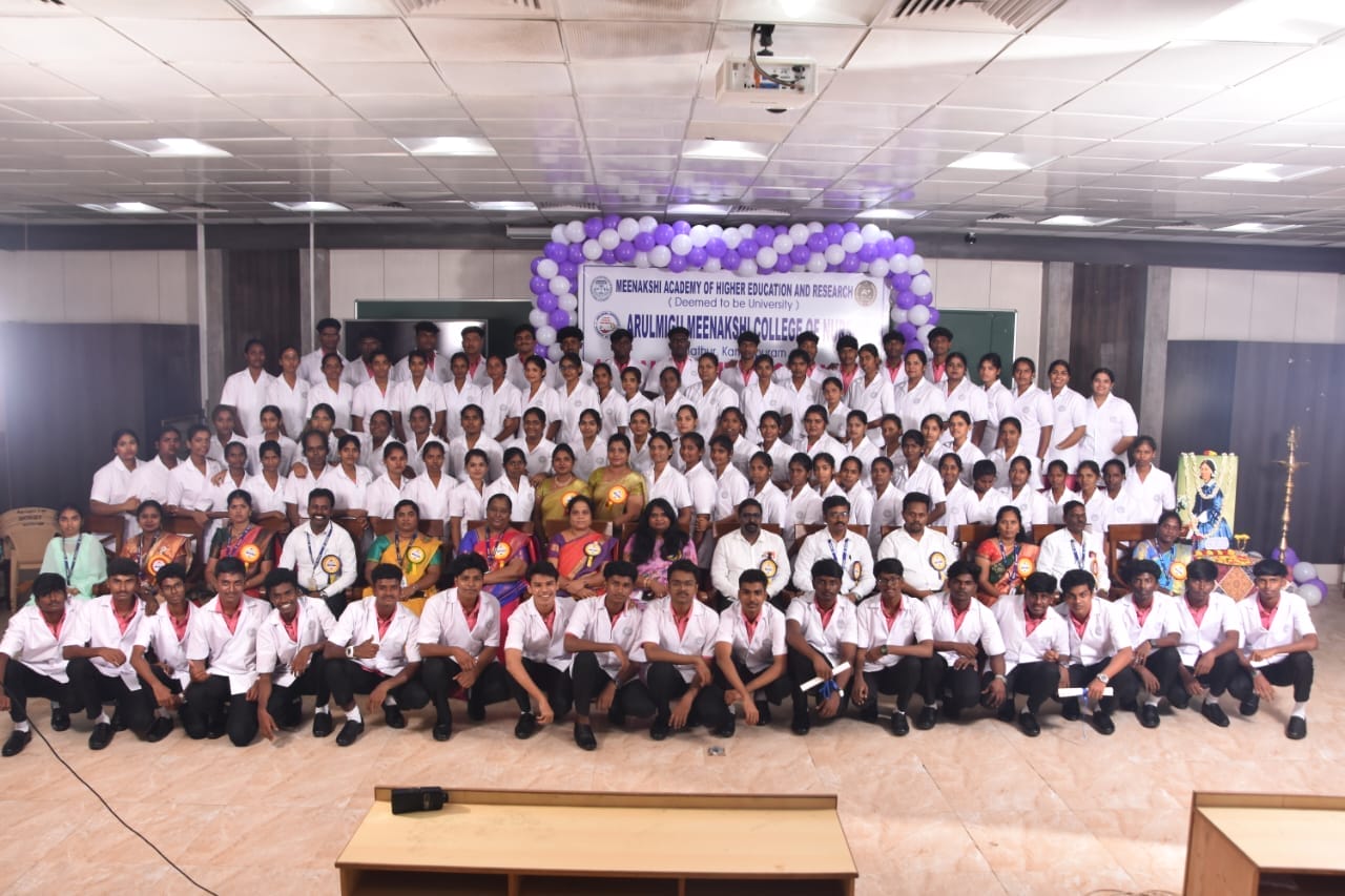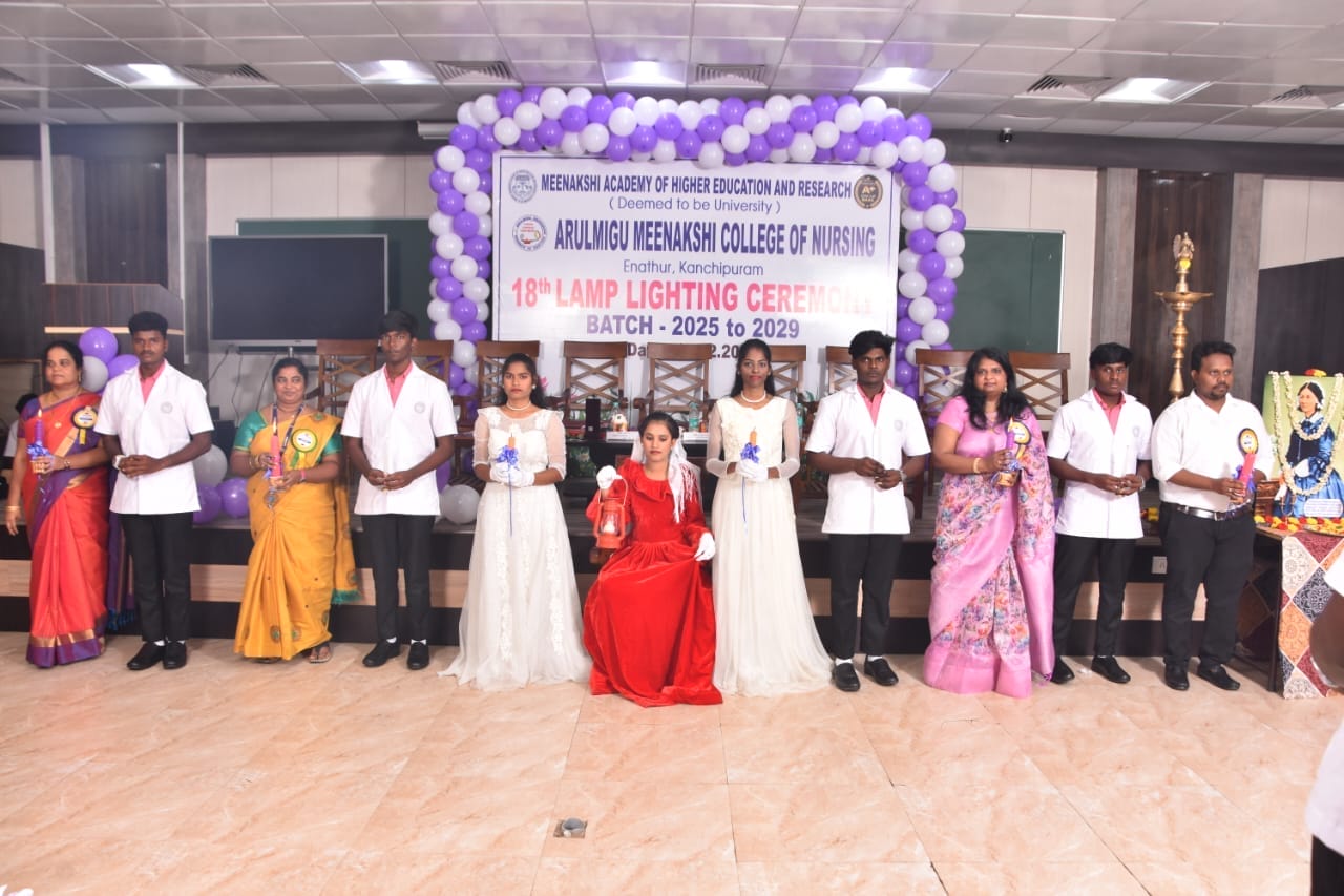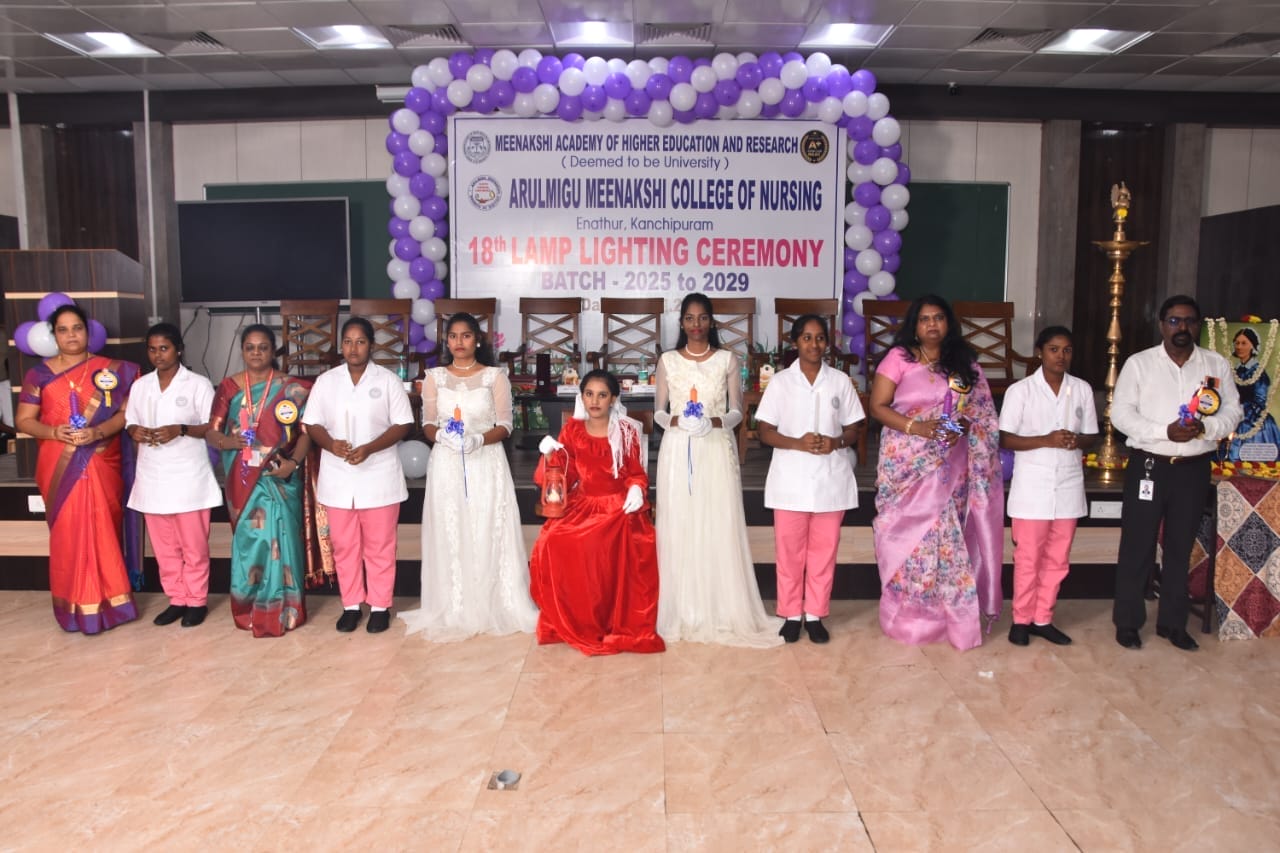 The Student Nurses Association of Arulmigu Meenakshi College of Nursing solemnly organized the 18th Lamp Lighting Ceremony for the B.Sc. (Nursing) students on 17 December 2025, marking a significant milestone in the academic and professional journey of aspiring nurses. This time-honoured ceremony, deeply rooted in the legacy of Florence Nightingale, symbolized the formal induction of students into the noble profession of nursing and reaffirmed core values such as compassion, dedication, ethical practice, and selfless service to humanity.