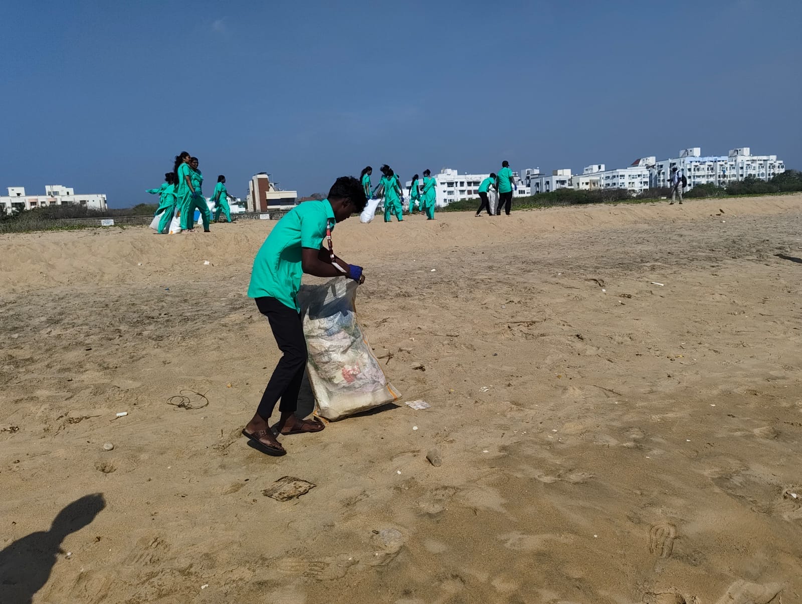 A total of fifty NSS volunteers and two faculty mentors actively participated in the drive, contributing 104 person-hours of dedicated community service. Over the course of two hours, the team covered a 500-metre stretch of coastline and removed approximately 150 kilograms of plastic waste, discarded fishing nets, glass fragments, and other debris. The collected waste was subsequently handed over to EFI for proper scientific disposal.