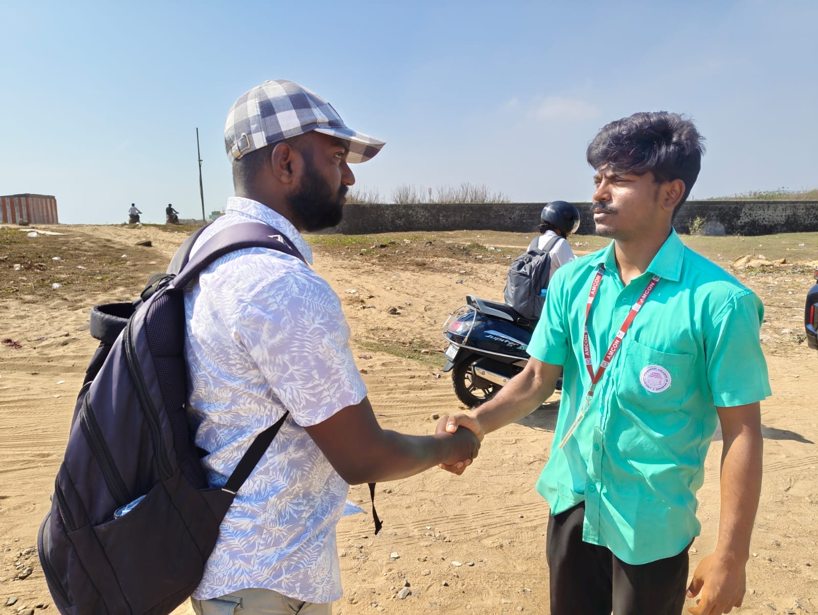 The programme began with an orientation session led by Mr. Praveen, Project Coordinator of the Environmentalist Foundation of India (EFI). He welcomed the volunteers and provided expert insights into turtle nesting behaviour, the harmful impact of marine debris on coastal biodiversity, and scientific waste management practices. Protective gloves and carry bags were distributed to ensure safe and systematic waste collection.