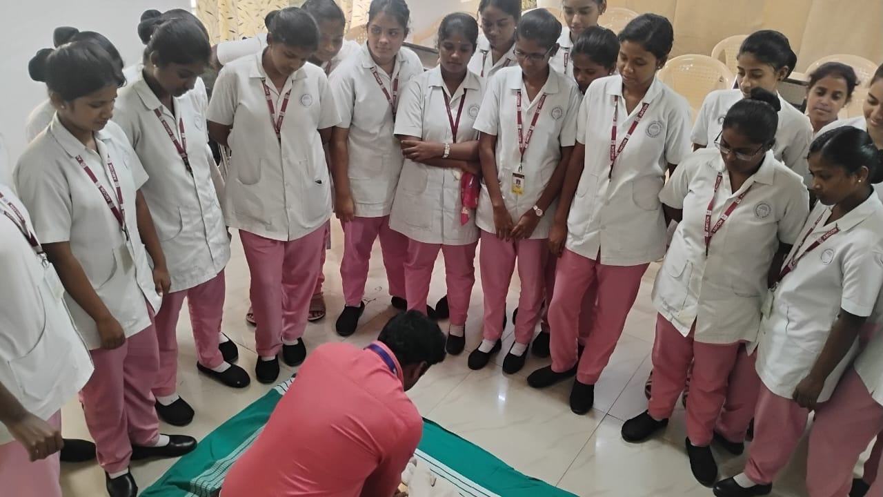 Arulmigu Meenakshi College of Nursing (AMCON) observed the Nationwide Cardiopulmonary Resuscitation (CPR) Awareness Week from 13th to 17th October 2025, organized under the guidance of the Ministry of Health and Family Welfare, Government of India. The initiative aimed to enhance public awareness, preparedness, and the ability to perform CPR, thereby empowering individuals to save lives during cardiac emergencies.