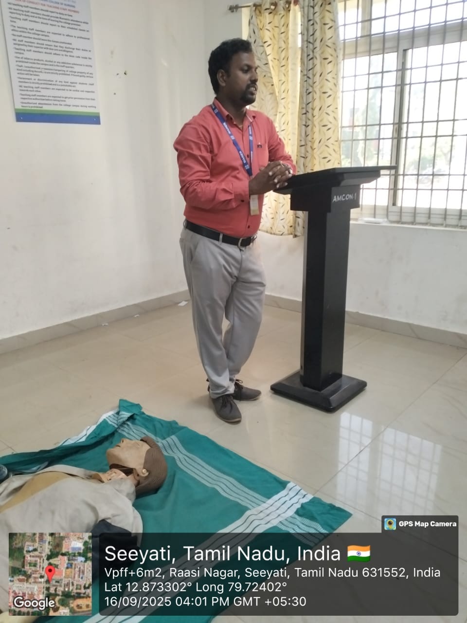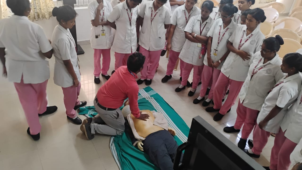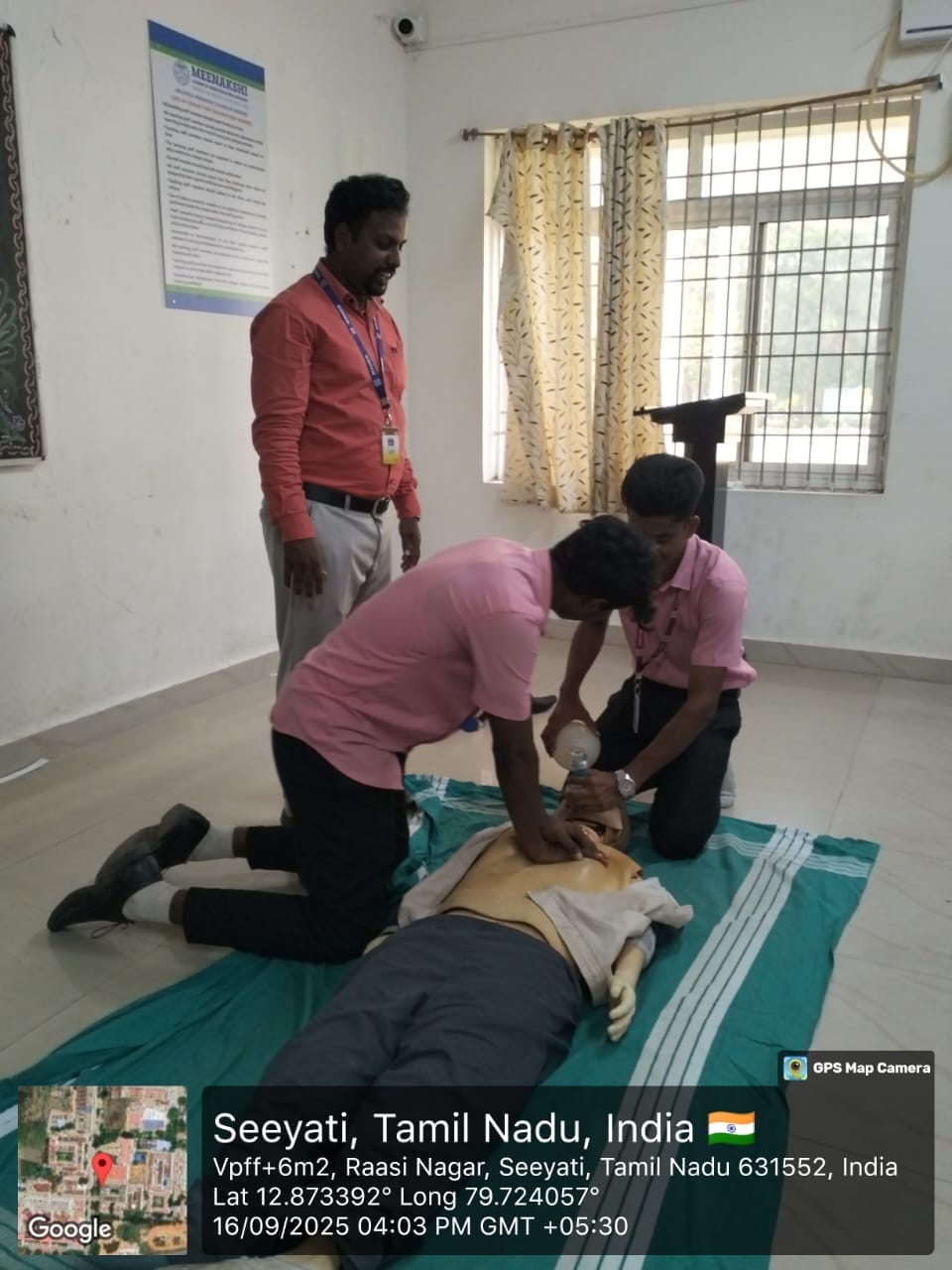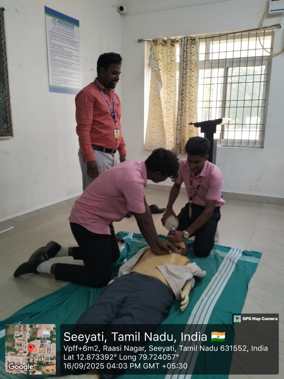 Arulmigu Meenakshi College of Nursing (AMCON) observed the Nationwide Cardiopulmonary Resuscitation (CPR) Awareness Week from 13th to 17th October 2025, organized under the guidance of the Ministry of Health and Family Welfare, Government of India. The initiative aimed to enhance public awareness, preparedness, and the ability to perform CPR, thereby empowering individuals to save lives during cardiac emergencies.