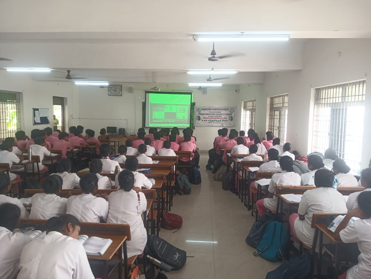 As part of the World Environment Day 2025 observance, the students and faculty of Arulmigu Meenakshi College of Nursing (AMCON) actively participated in an insightful online lecture titled “On a Finite Earth, Can We Afford Ever-Growing Consumption?” The event, held on 5th June 2025 at Lecture Hall – I, was organized by the University Grants Commission (UGC) as part of its Chetna Lecture Series.