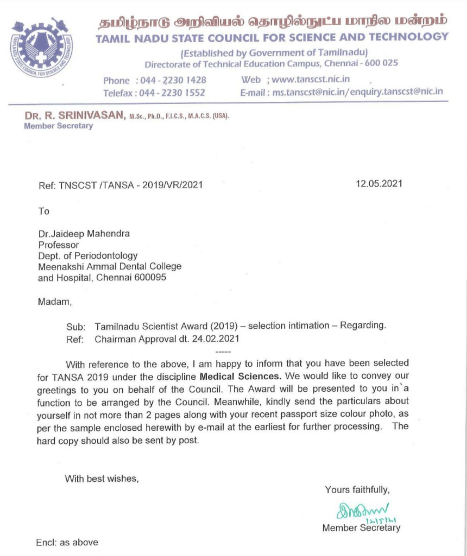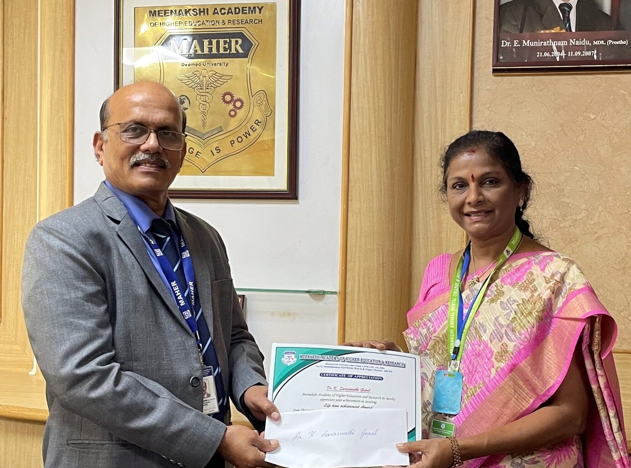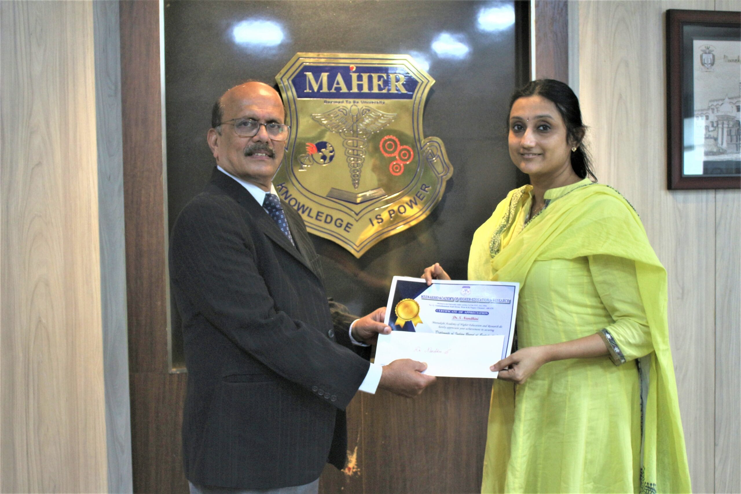 MAHER provides research commendation awards in the form of one-time cash prizes and certificates to recognize outstanding accomplishments in the field of scientific research, funded projects, patents, innovations, fellowships from recognized National/International bodies, extension, and outreach activities.