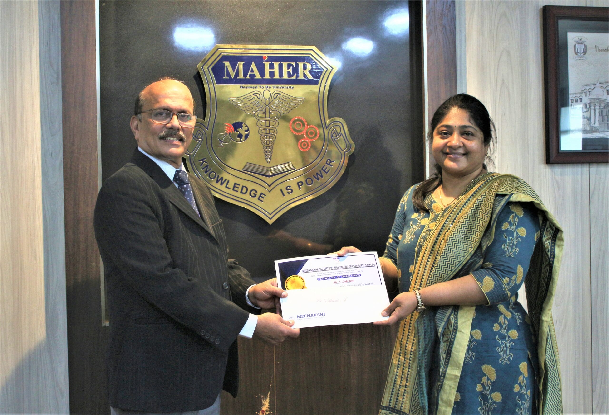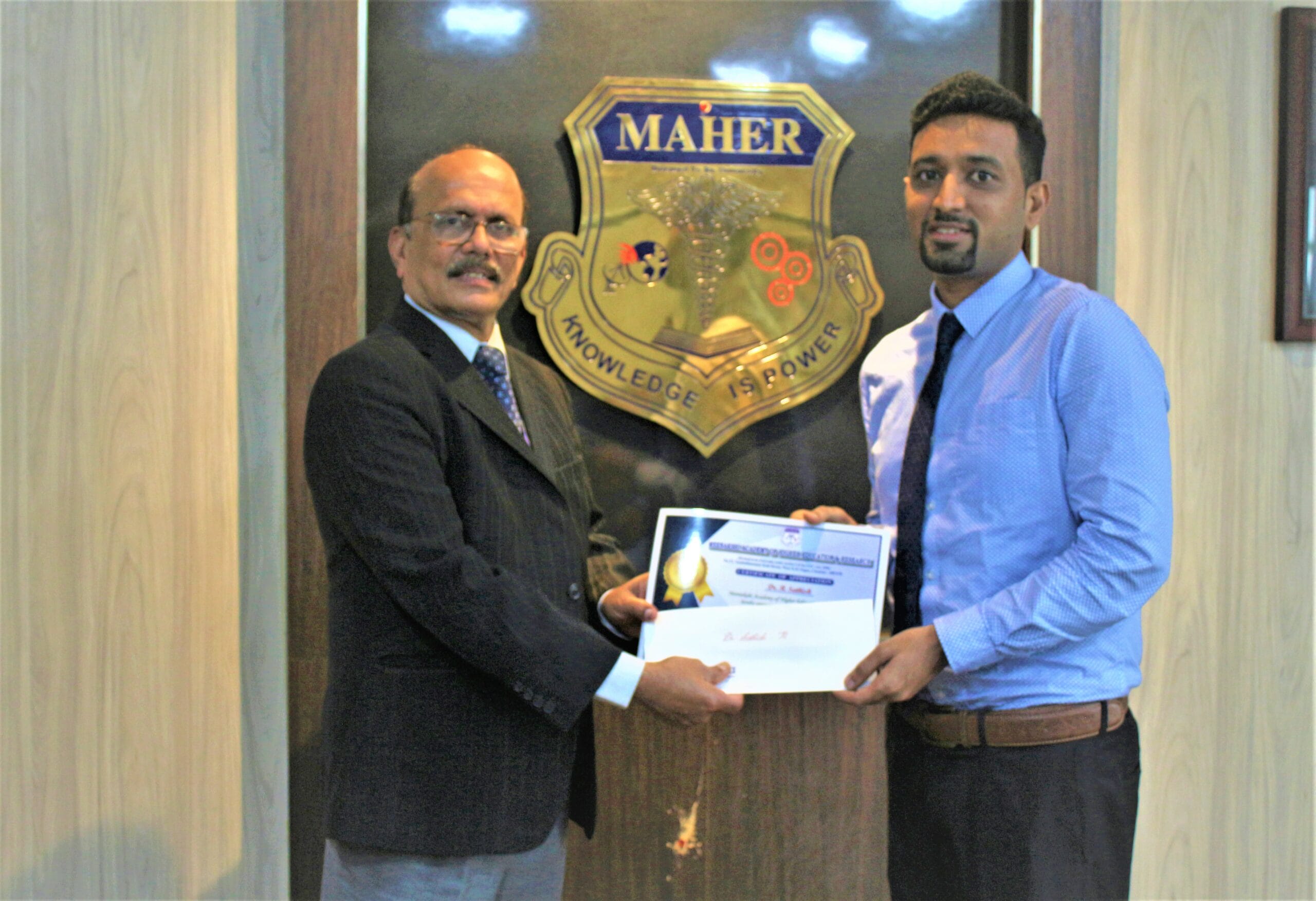 MAHER provides research commendation awards in the form of one-time cash prizes and certificates to recognize outstanding accomplishments in the field of scientific research, funded projects, patents, innovations, fellowships from recognized National/International bodies, extension, and outreach activities.