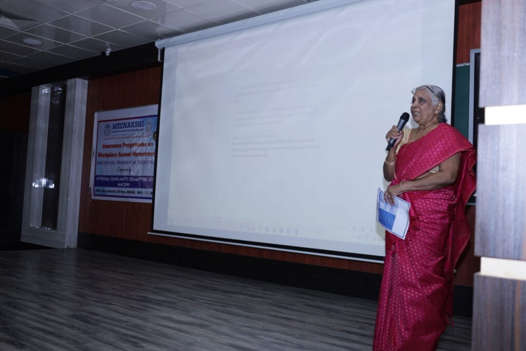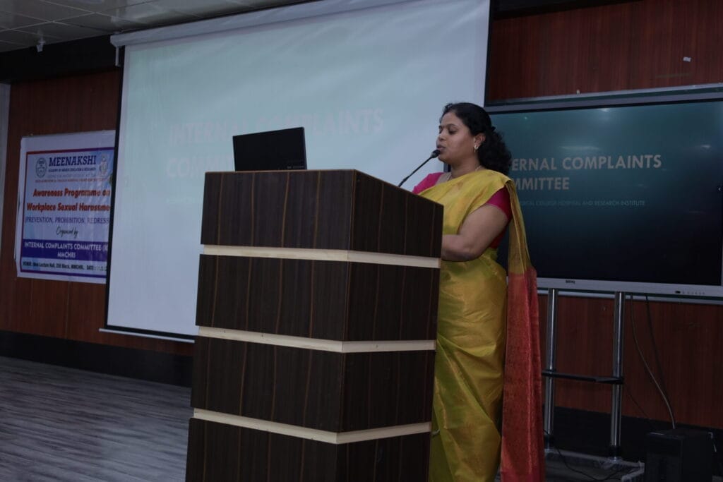 The Internal Complaints Committee, Meenakshi Medical College Hospital & Research Institute conducted an Awareness Programme on ICC and Workplace Sexual Harassment on 03.12.2024 at New CME Hall. Welcome address was given by Dr. Athibha, Assistant Professor, Department of Psychiatry. Inaugural address was delivered by Prof. Dr. K. V. Rajasekhar, Dean, MMCH&RI. Dr. Indhu .C, Presiding Officer, ICC delivered the keynote address and explained about sexual Harassment Ebox portal. Dr. Kala, Professor, Department of OBG explained about the Workplace Sexual Harassment and role of ICC. The programmed concluded with Vote of thanks by Dr. Herosha, Senior Resident, Department of OBG.A total of 251 students attended the Programme.
