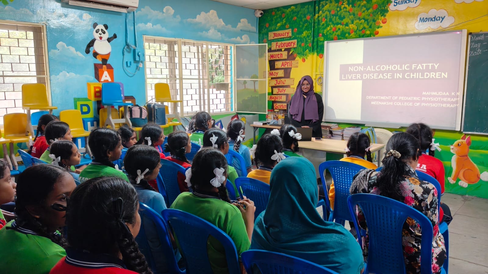 Ms. Mahmudaa K. N., MPT I Year, under the guidance of Dr. P. V. Hari Hara Subramanyan, Department of Physical Therapy in Pediatric and Neonatal Sciences, Meenakshi College of Physiotherapy, delivered an awareness talk on “Non-Alcoholic Fatty Liver Disease in Children” at Madha Public School (CBSE), Valasaravakkam, on 15th October 2025.
