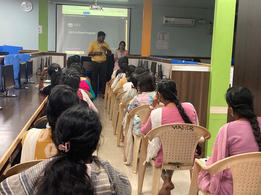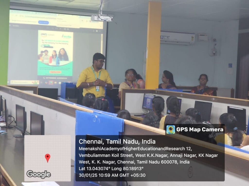 Anudip and the Department of Computer Science and Applications of MAHER-FHS organized a induction program on “AWS” for the final year students of B.Sc Computer Science and BCA On 30th January 2025, the seminar took place from 11:00 AM to 12:30 PM, aiming to provide a gateway to learn cloud in a step-by-step approach. Around 52 students and faculty from the Department of Computer Science and Applications attended the program.