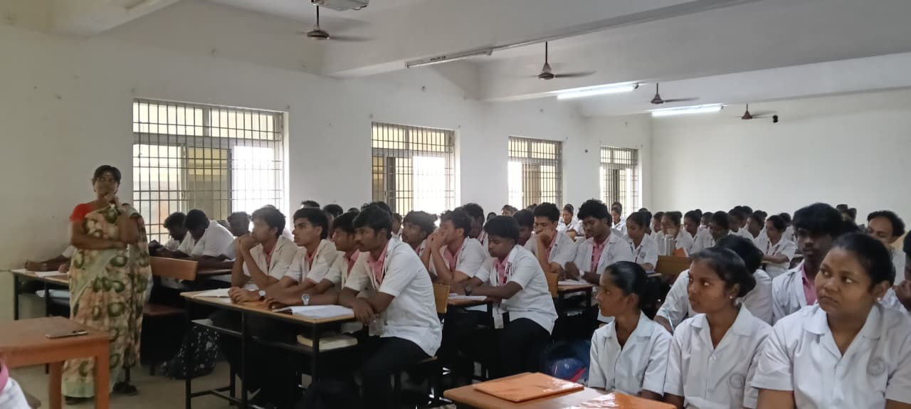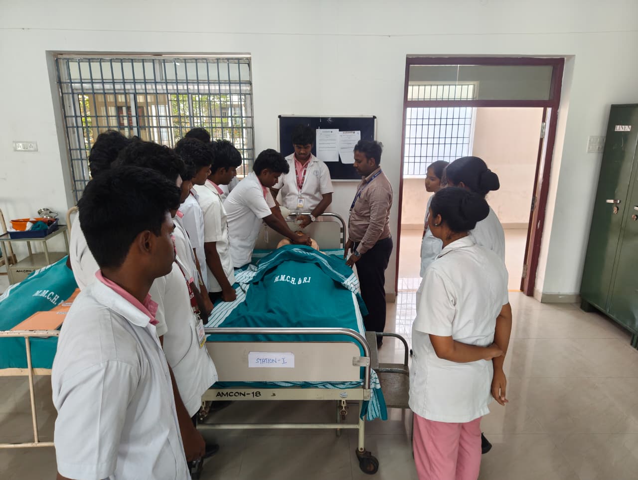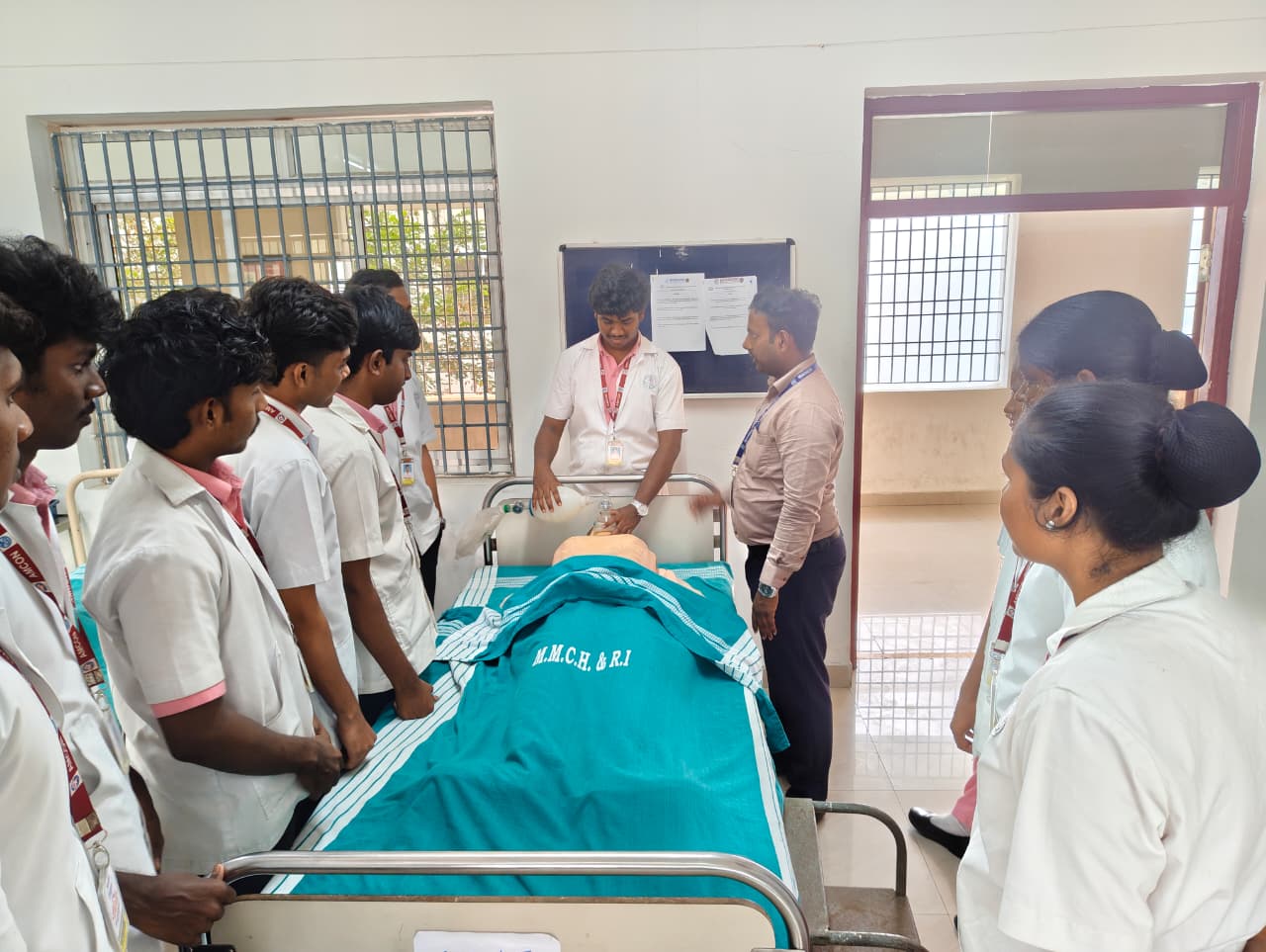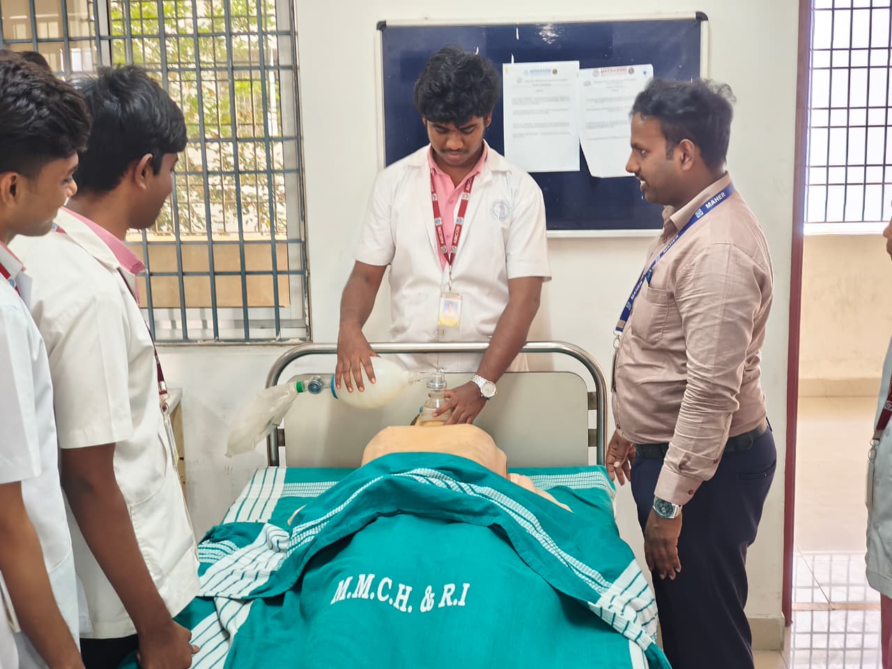 The morning theory session was delivered by Prof. Kanchana, Vice Principal, Sankar College of Nursing, Kanchipuram. The practical skill stations were conducted by Mr. E. Prasanna Kumar, BCLS Instructor (IRCF) and Simulation Instructor (HSSC).