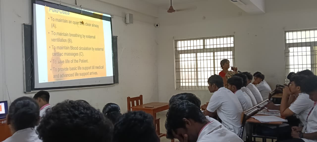 The programme commenced at 10:00 a.m. with a formal introduction of the resource persons and concluded at 4:30 p.m. after completion of the skill stations. The training aimed to enhance students’ knowledge, psychomotor skills, and confidence in recognizing and managing life-threatening emergencies, including cardiac arrest, choking, and respiratory failure.