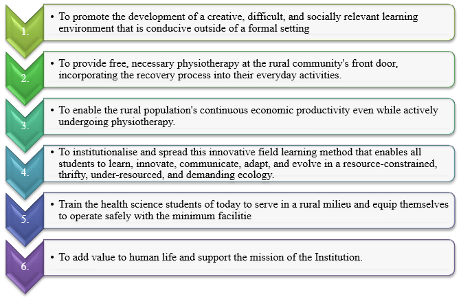 Plan implementation– The Physiotherapy students of MAHER set up the base camp in the central village under the supervision of the faculty. The lodging arrangements were provided by the villagers while the transportation and food were sponsored by MAHER. The students fanned out to the surrounding villages in batches of ten, where all needy patients were offered physiotherapy at their doorstep. The teams visited the villages continuously for seven days ensuring absolute patient compliance.