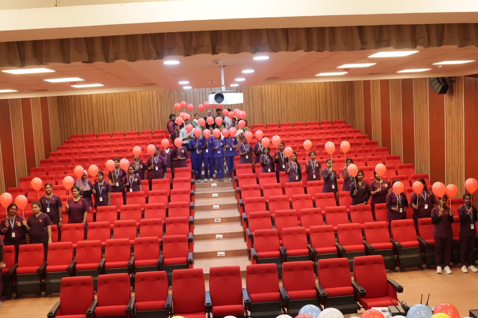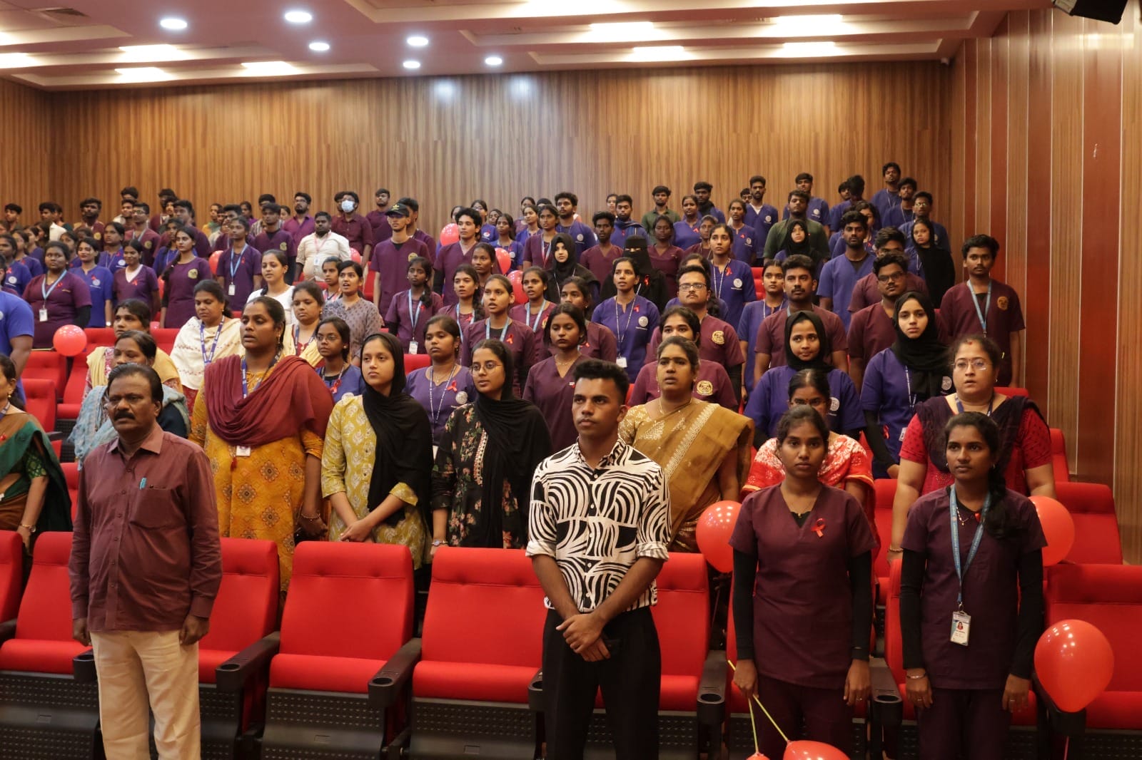As a symbolic gesture of solidarity and awareness, students formed a red ribbon using red balloons, reinforcing the message of compassion, support, and collective responsibility in the fight against HIV/AIDS.