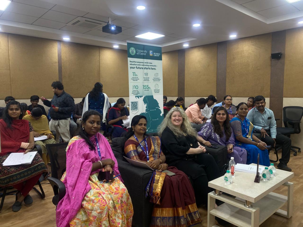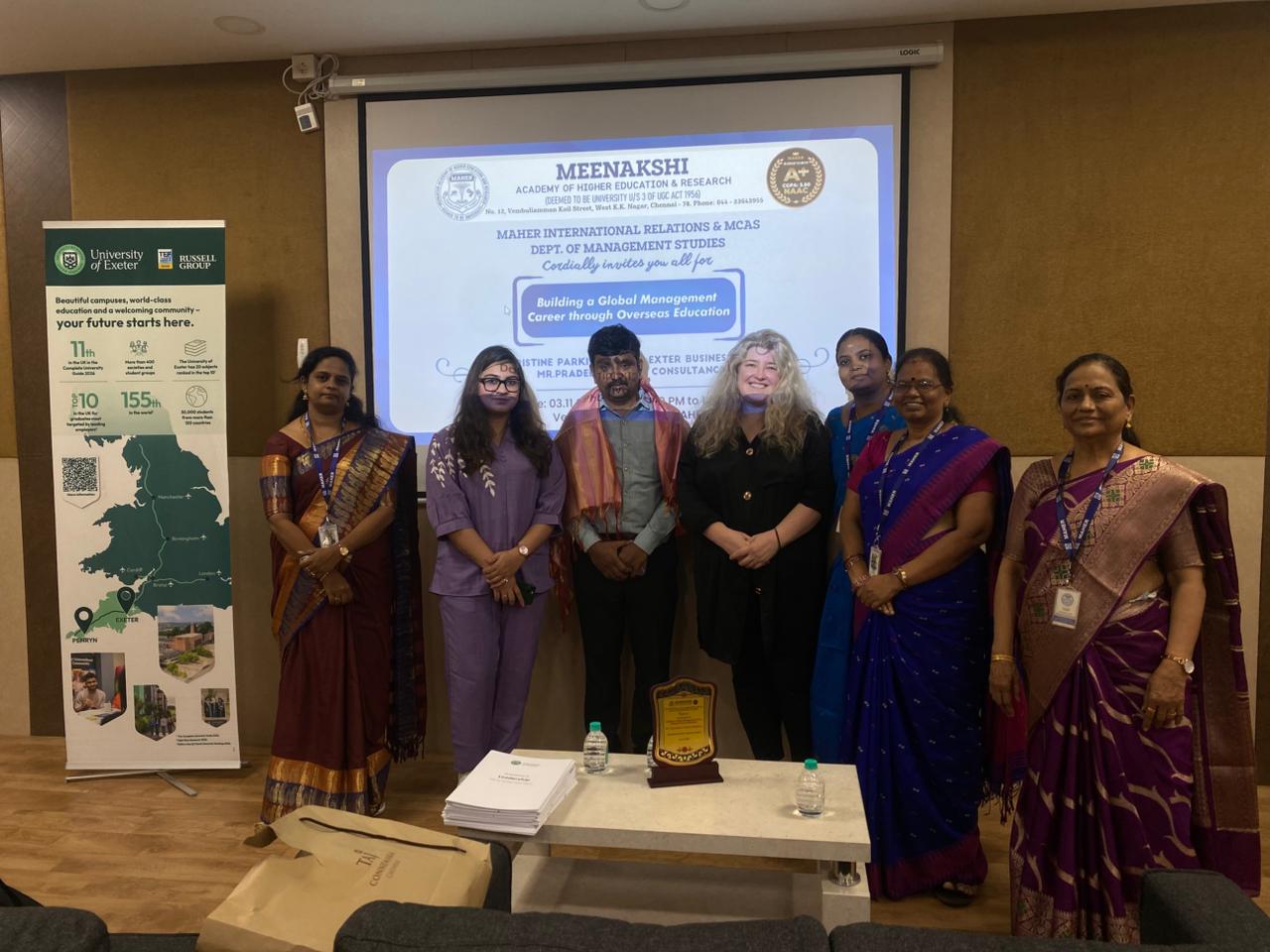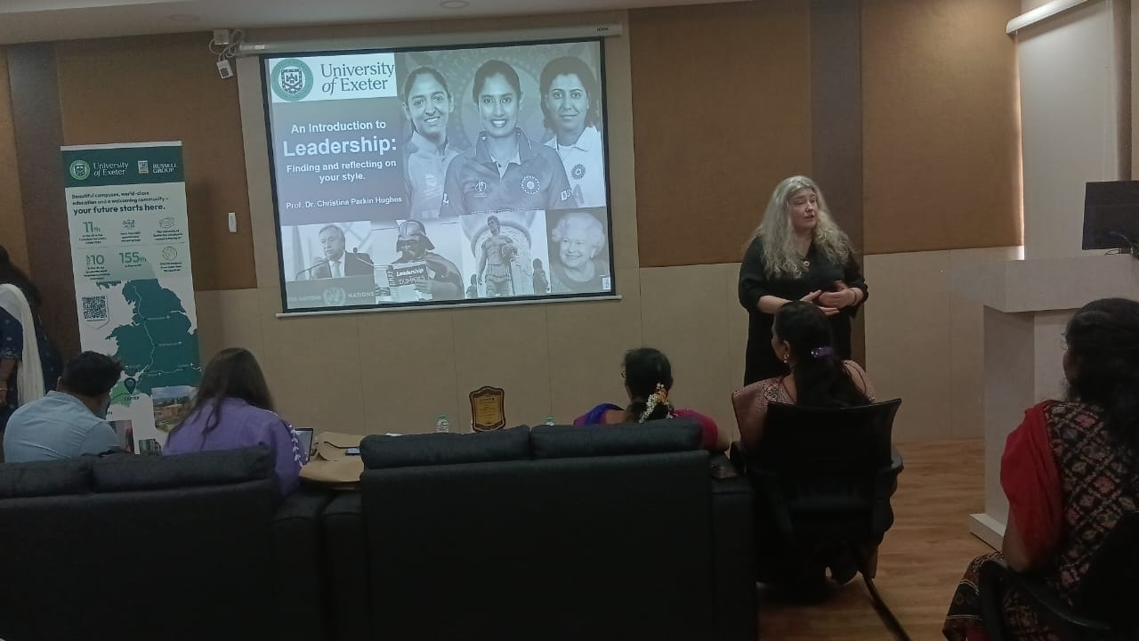 The session was led by Dr. Christine Parkin Hughes from the University of Exeter Business School, along with Mr. Pradeep from Edwise Consultancy. They shared valuable insights on global career building, leadership, communication, and time management, motivating students to excel academically and professionally.