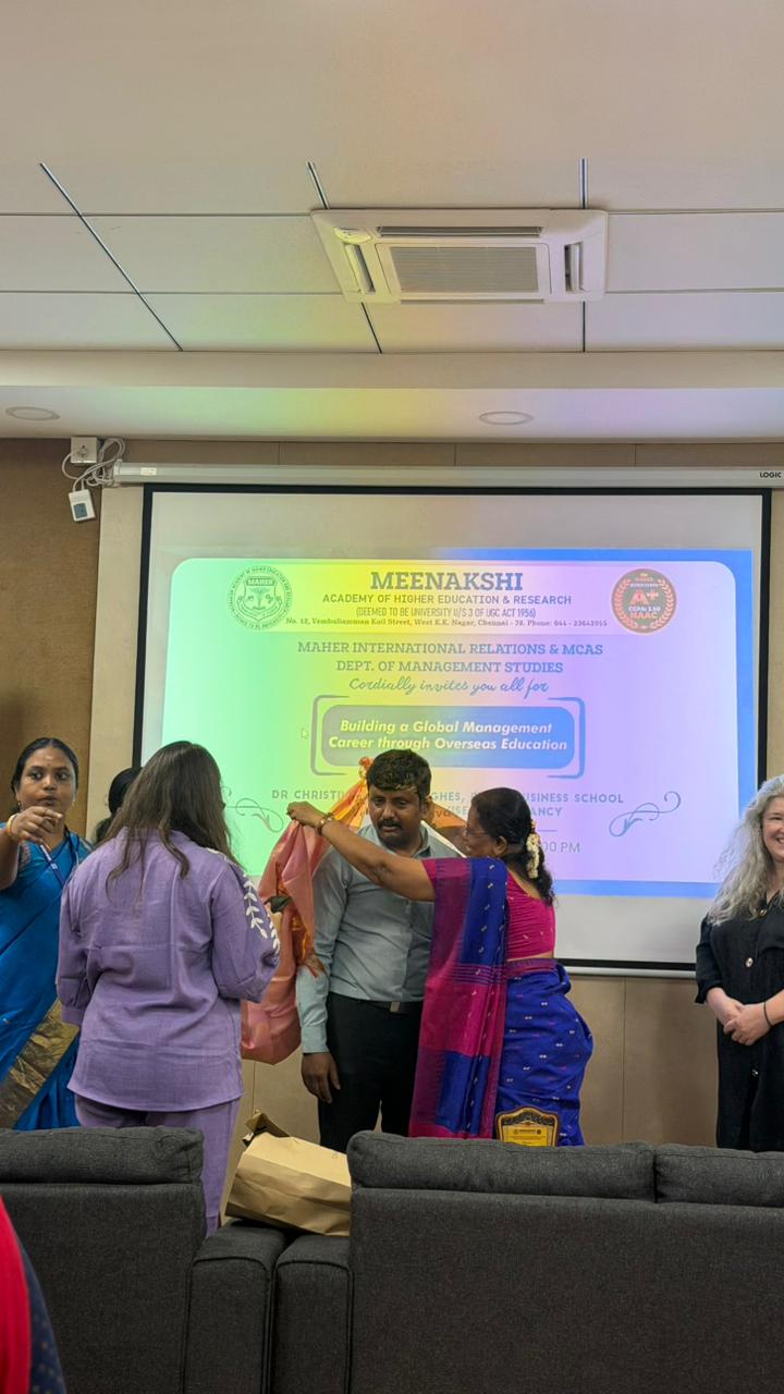 The Department of Management Studies, Meenakshi College of Arts and Science, in collaboration with International Relations, MAHER, organized an insightful guest lecture on 3rd November 2025 for first-year MBA and BBA students at the PhD Viva Voce Hall.