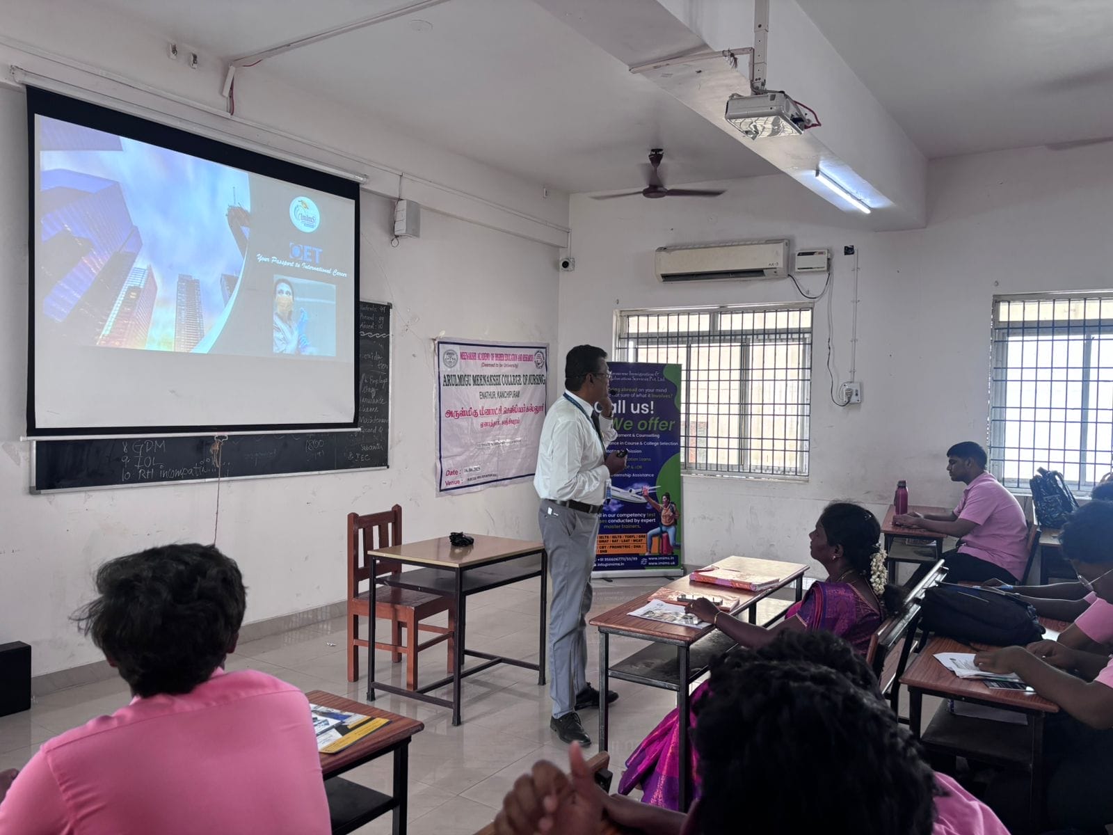 Ms. Vaishali Merin, an expert OET Trainer, introduced the range of OET courses and training programs available, highlighting how these could help students prepare for global nursing opportunities.