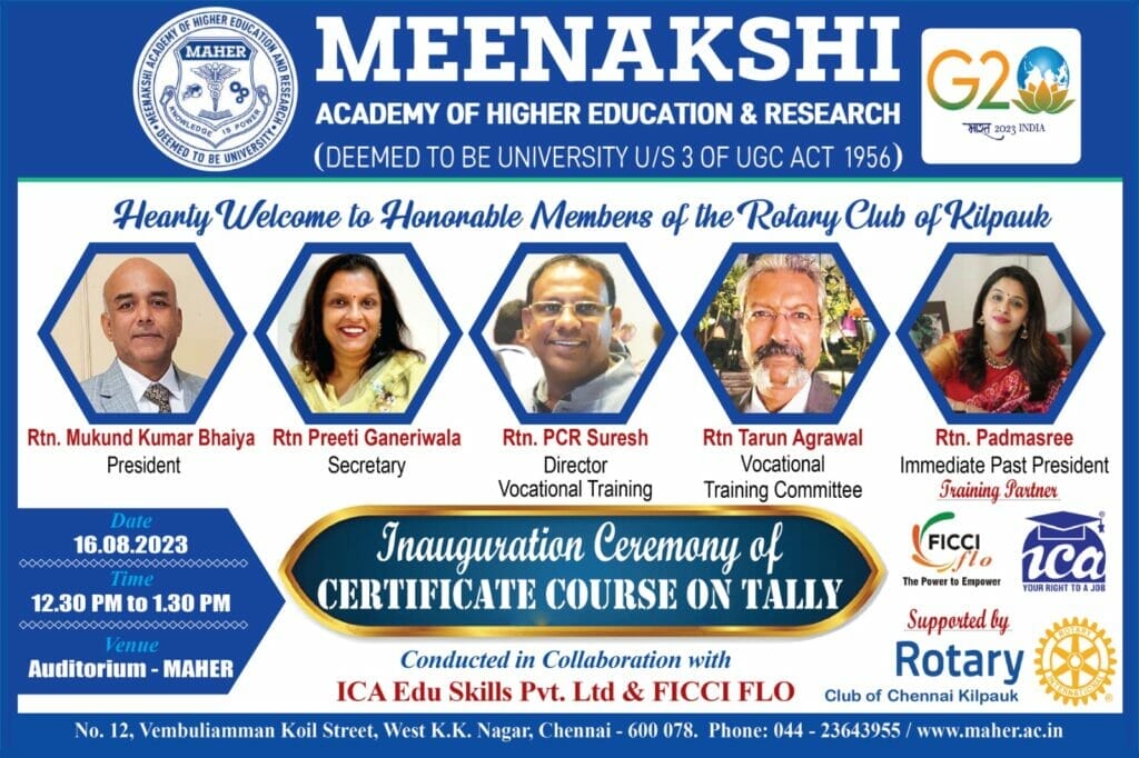 The event underscored the importance of acquiring modern accounting skills in a rapidly evolving business landscape. The collaboration between MAHER and Rotary Club of Kilpauk was acknowledged as a commendable step towards fostering skill development and knowledge enhancement.