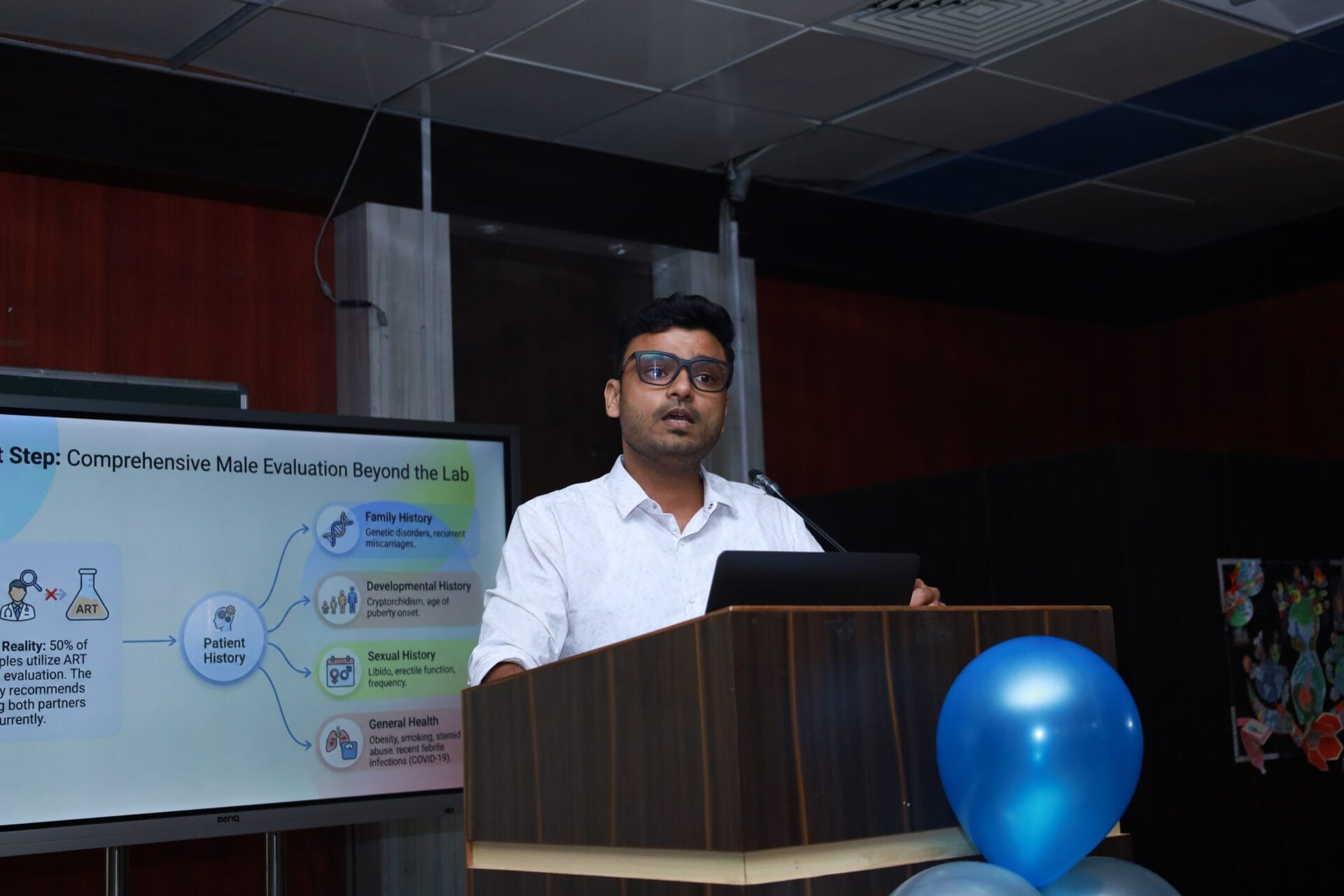 The programme commenced with a formal inaugural session, setting an academic tone for the day. Eminent experts in the field of reproductive medicine delivered insightful lectures covering contemporary stimulation protocols, interpretation of semen analysis, and the role of medical management in male infertility. The sessions provided participants with evidence-based approaches and practical perspectives relevant to day-to-day clinical practice.