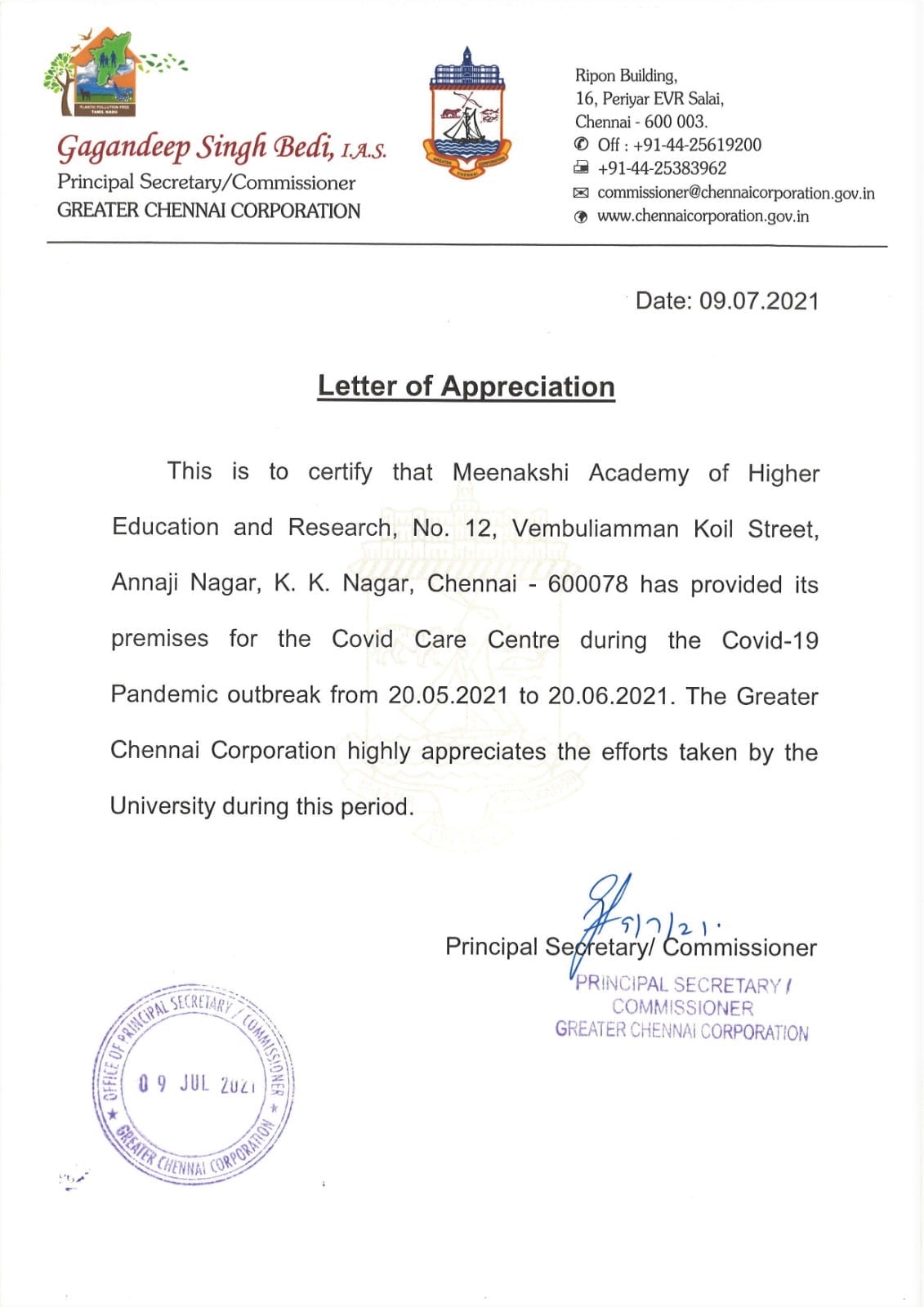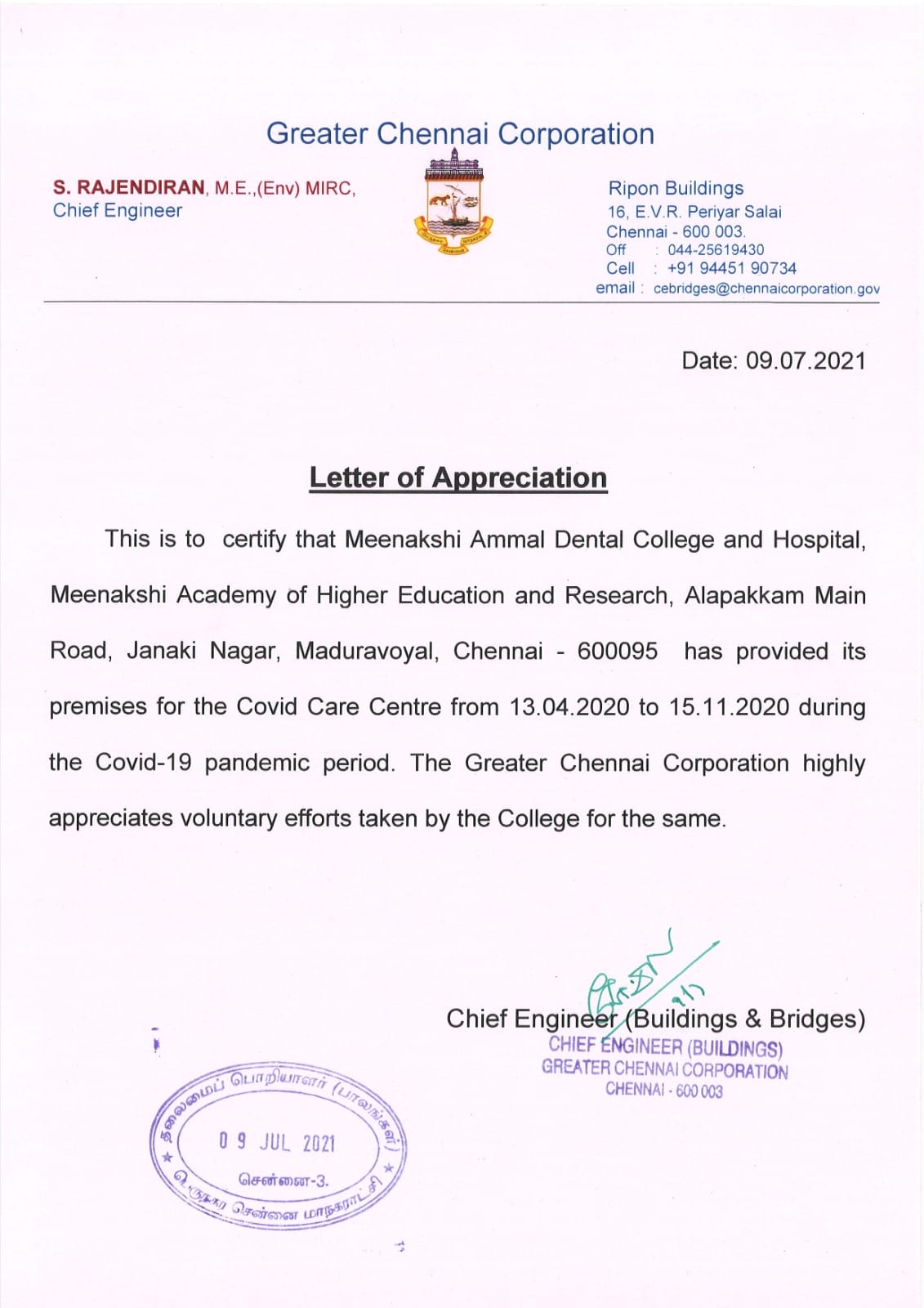 | 5 | Award of Excellence for Community Connect | Thiruverkadu Municipality | Faculty of Physiotherapy, Meenakshi Academy of Higher Education and Research |