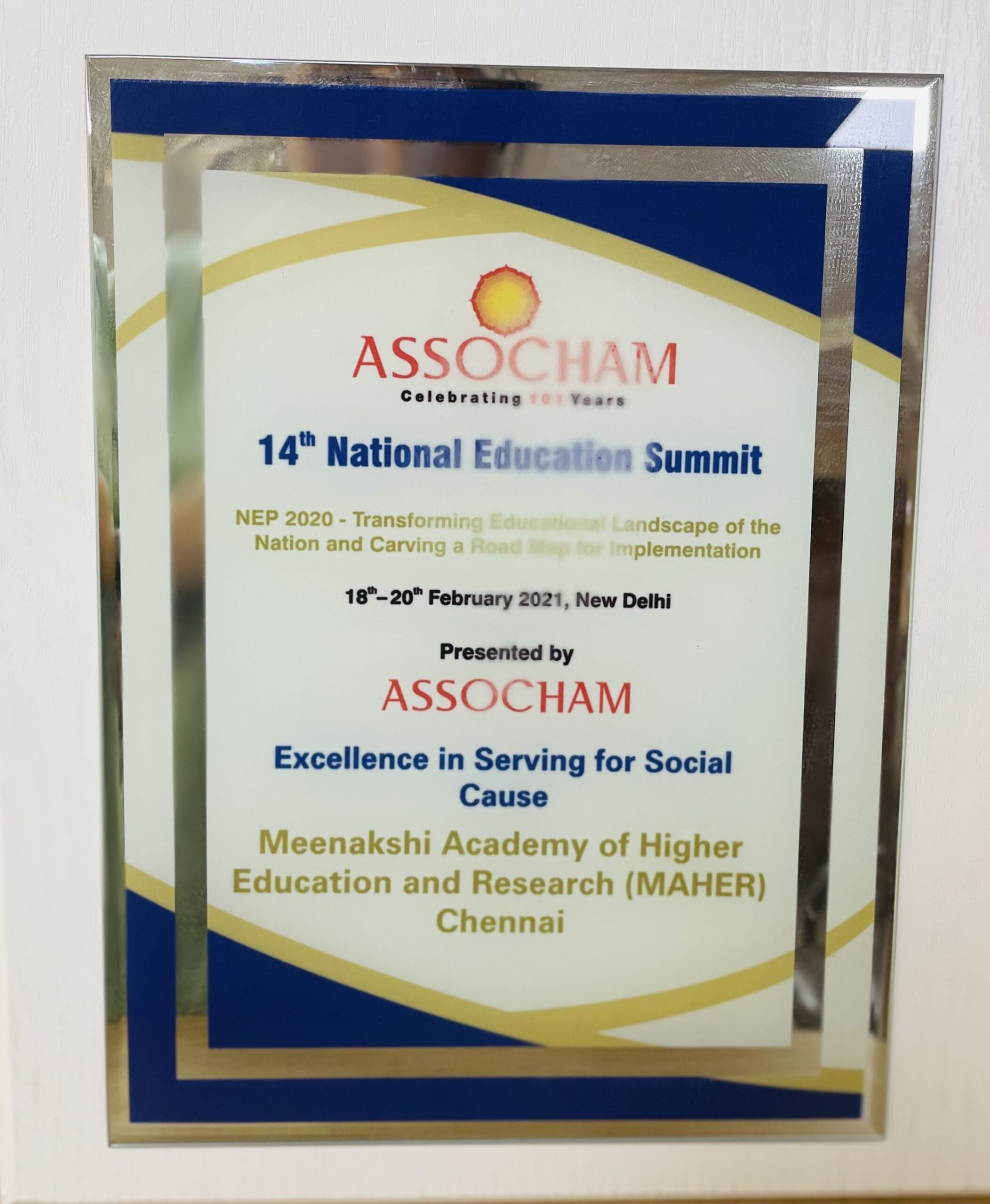 | 6 | Excellence in Serving for Social Cause | ASSOCHAM, 14TH National Education Summit | Meenakshi Academy of Higher Education and Research |