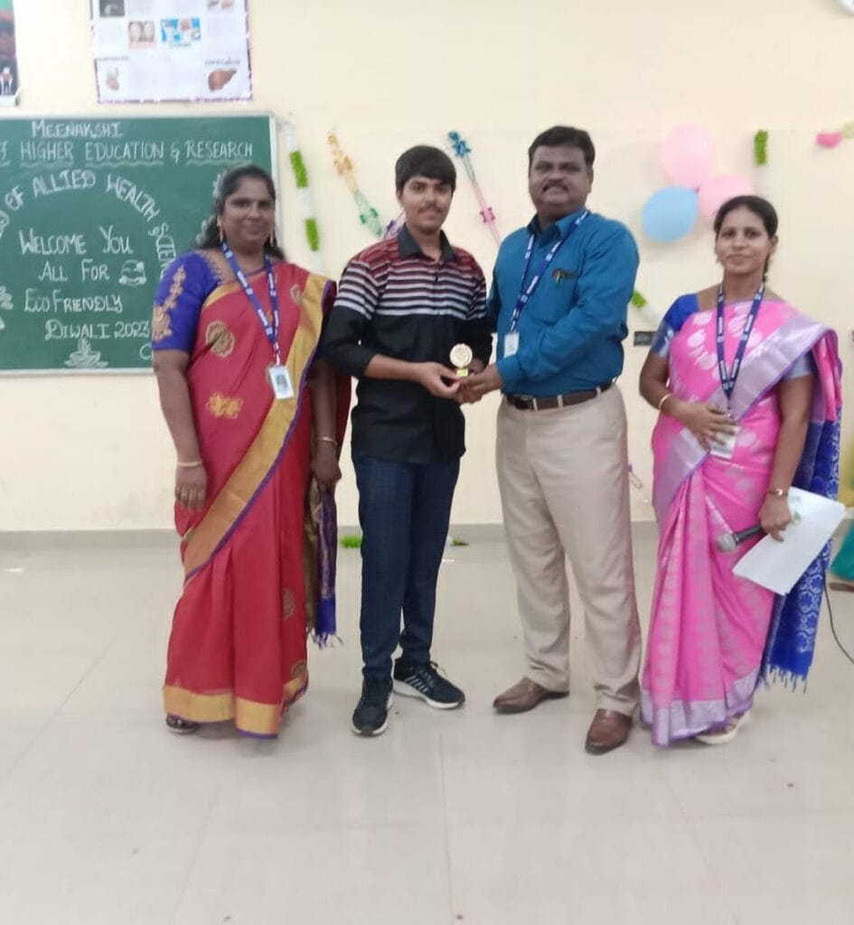 In celebration of Diwali, Faculty of Allied Health Sciences, MAHER celebrated Eco-friendly Diwali 2023 on November 10th 2023.This festive occasion featured a series of exciting competitions for the students, like Rangoli contest, Henna contest, My Talent show,Tamil Elocution and cultural events.This event provided an excellent opportunity for students to showcase their talents. The winners of each event were announced and distributed the prizes.