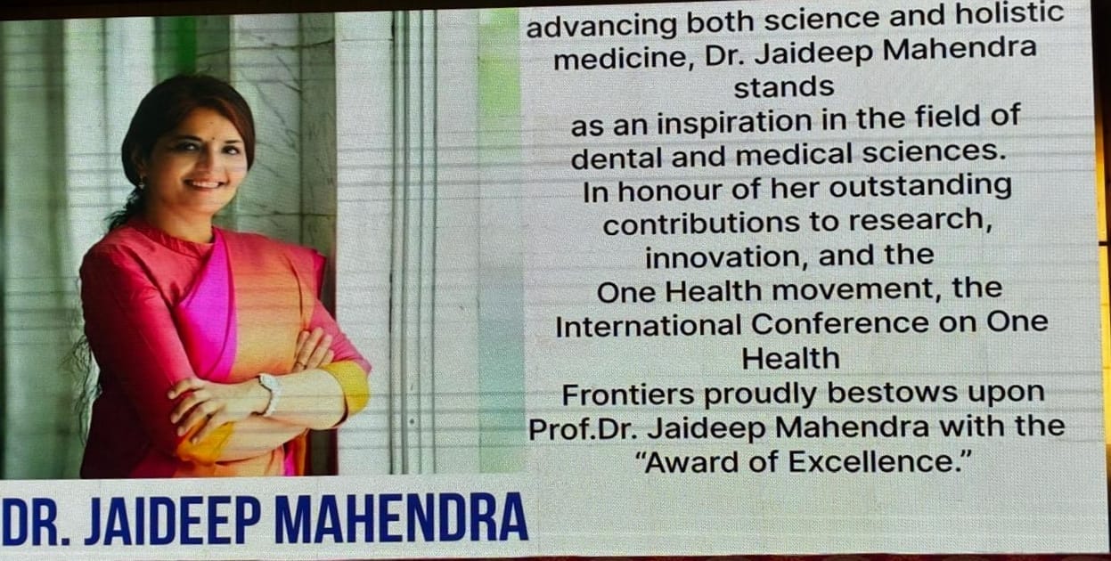 This prestigious recognition celebrates Dr. Jaideep Mahendra’s pioneering research and contributions in the field of dental and systemic diseases, which have significantly advanced the One Health approach-a collaborative effort linking human, animal, and environmental health.