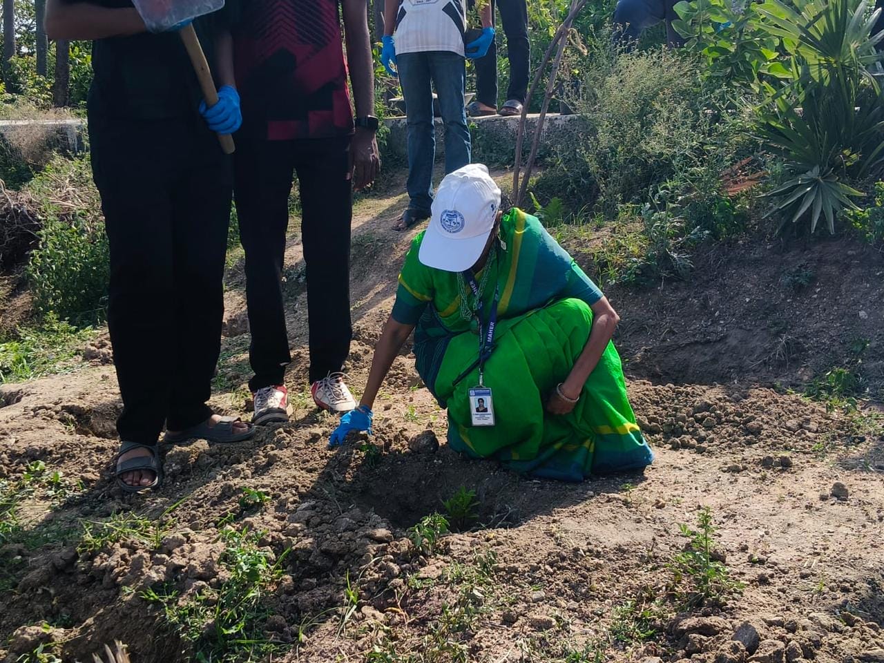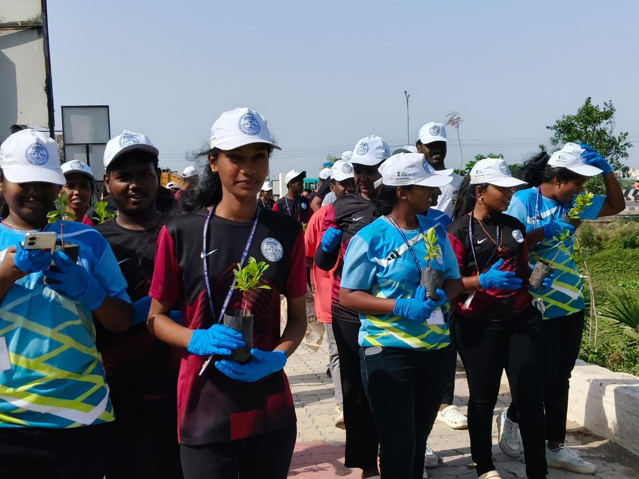 During the clean-up drive, 40 students and 2 faculty members worked collectively to remove waste from the lake area, successfully collecting and segregating 16 sacs of plastic and other pollutants. The initiative continued with the planting of 50 vibrant saplings, including species such as Hibiscus, Paarijatham, Ixora, and Bougainvilla, contributing to the lake’s green cover and biodiversity.