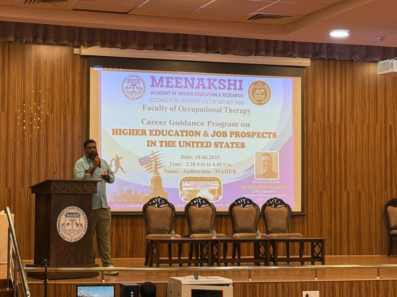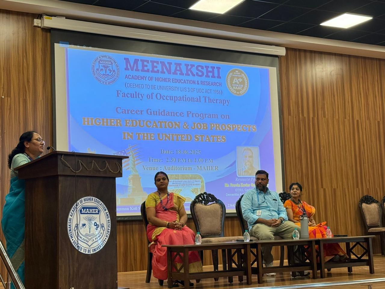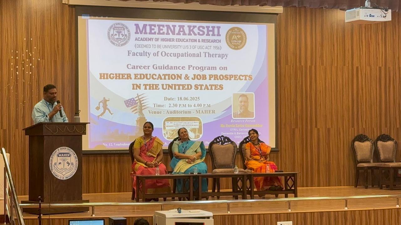 The Faculty of Occupational Therapy (FOT), MAHER, organized a Career Guidance Program titled “Higher Education and Job Prospects in the United States” on 18th June 2025. The event aimed to equip students with insights into international opportunities in the field of Occupational Therapy. A total of 174 students and 4 faculty members participated in the session.