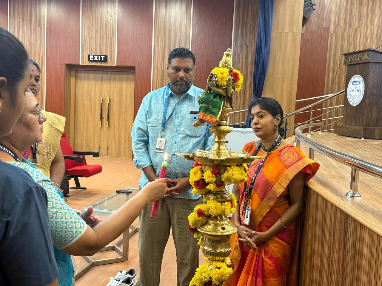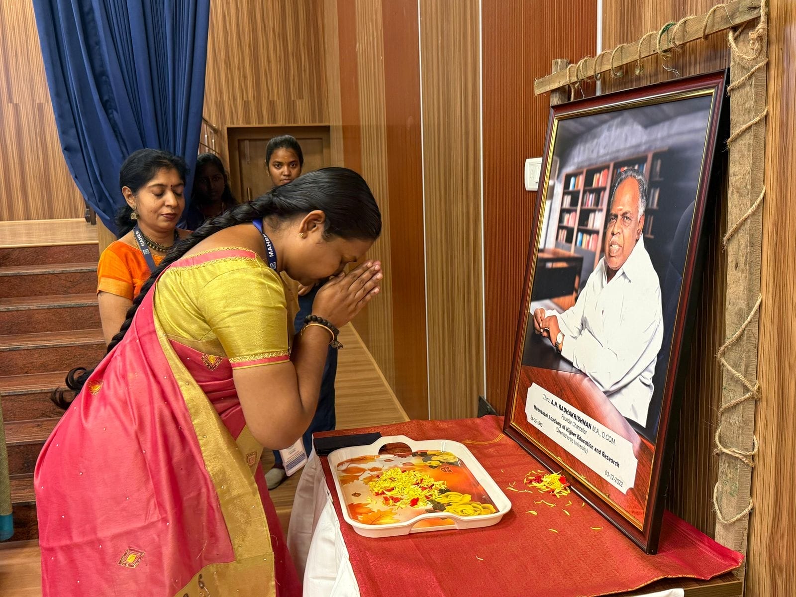 The program began with the Tamil Thai Vazhthu, followed by the lighting of the Kuthuvilakku and a floral tribute to the Founder Chancellor, Thiru A.N. Radhakrishnan, by the dignitaries.