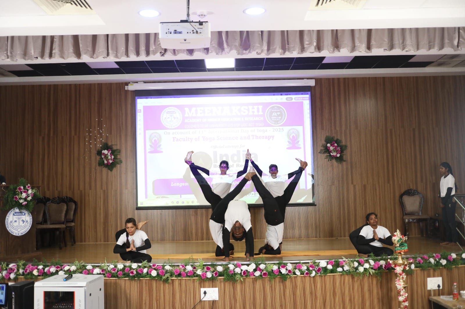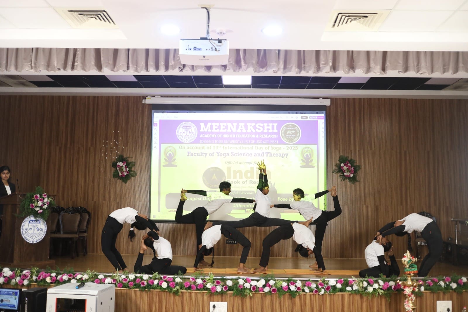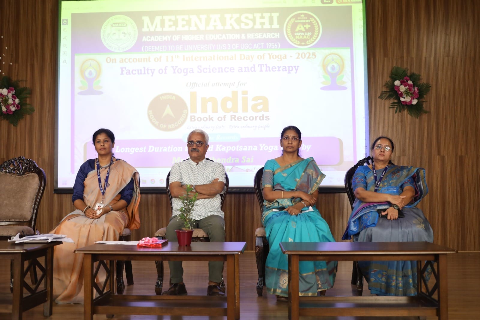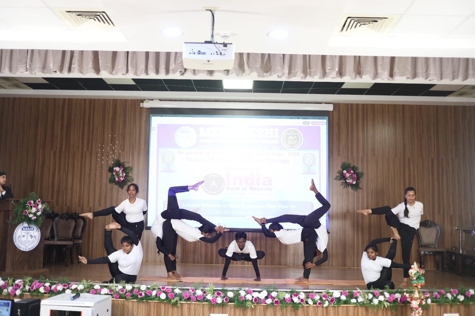 A key highlight of the event was a record attempt in Kapotasana (Pigeon Pose) by Mr. M. Githendra Sai, officially witnessed and validated by Mr. Vivek R. Nair, Adjudicator from the India Book of Records, who also delivered an appreciation address to acknowledge the dedication and excellence demonstrated.