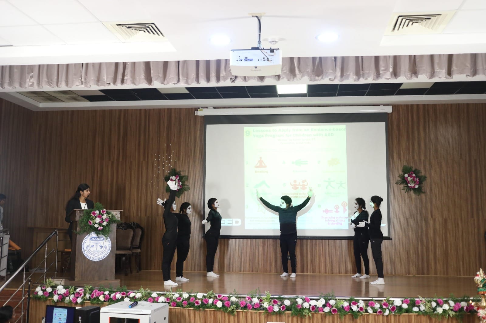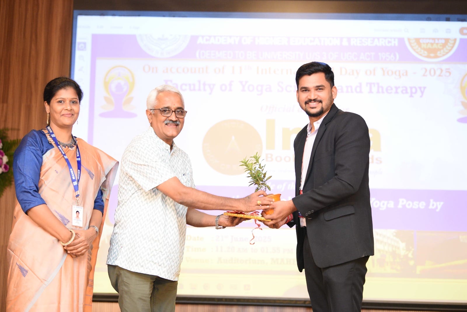 Students of FYST presented an artistic yoga demonstration, showcasing strength, flexibility, and discipline. A report was also presented detailing the month-long yoga awareness initiatives, including workshops and programs conducted for teaching, non-teaching, and housekeeping staff, IT professionals, and members of the local community. These efforts culminated in a community rally aimed at spreading awareness about the importance of integrating yoga into everyday life.