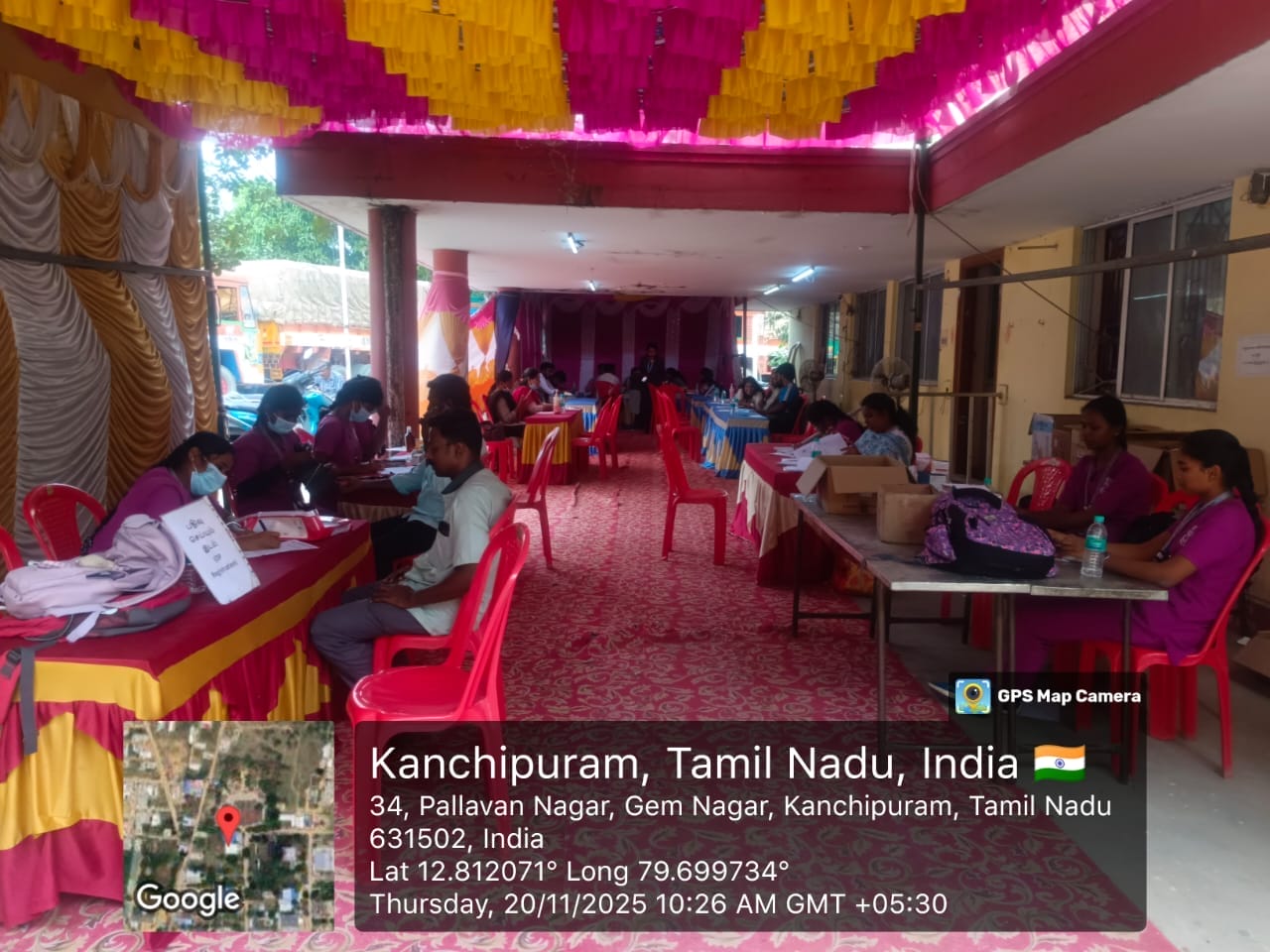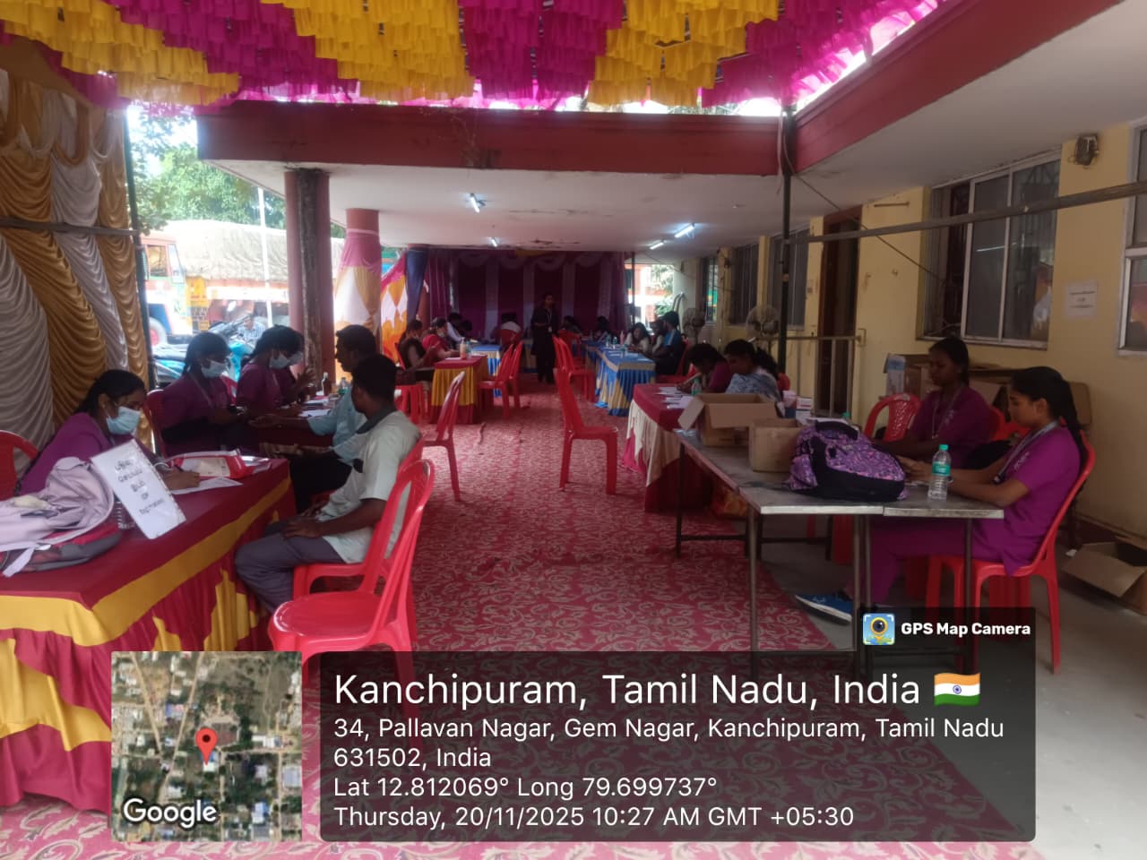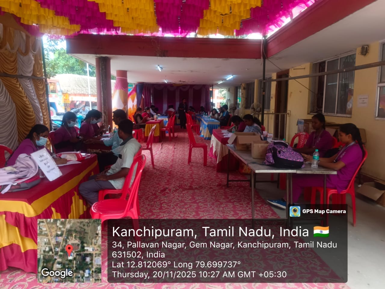 The second and third year students of the Faculty of Allied Health Sciences enthusiastically participated in a General Health Check-up Camp conducted at Orikkai, Kanchipuram, on 20th November 2025. The camp was organized to deliver essential healthcare services to the local population while also fostering greater awareness on preventive health and wellness.