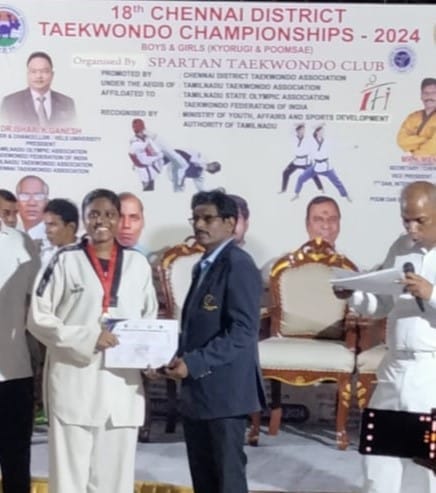 Ms.S.M.Keerthana of Ist BDS from Meenakshi Ammal Dental college has won a gold medal in the Chennai District Taekwondo Championship held at J.N.Stadium Chennai on 30th June 2024