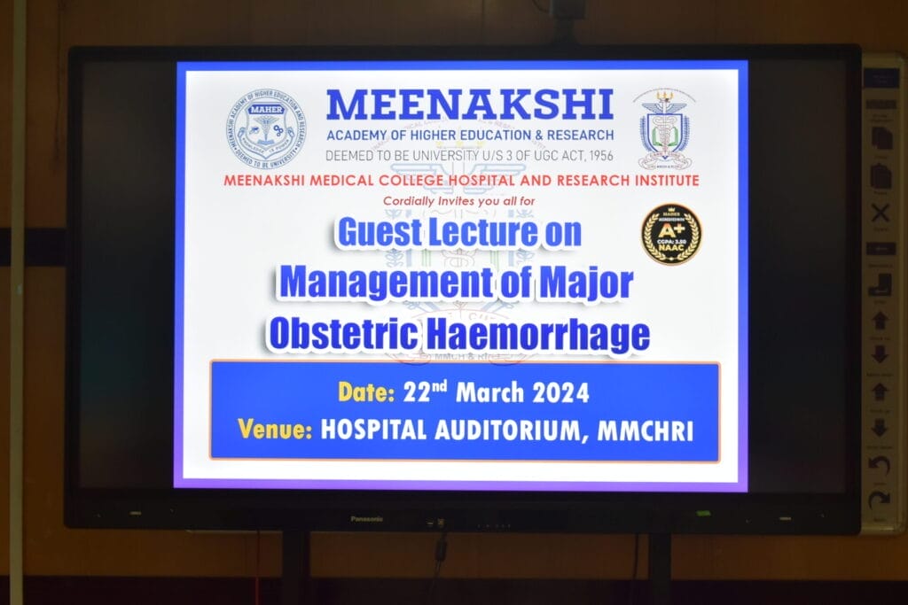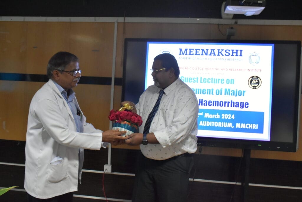 Meenakshi Medical College Hospital and Research Institute conducted the Guest Lecture on Management of Major Obstetric Haemorrhage by Dr. MURALIDHARAN SELVANAMBI, MBBS, MD, FRCA, Consultant Anesthesiologist, University Hospital Waterford Ireland on 22nd March 2024.