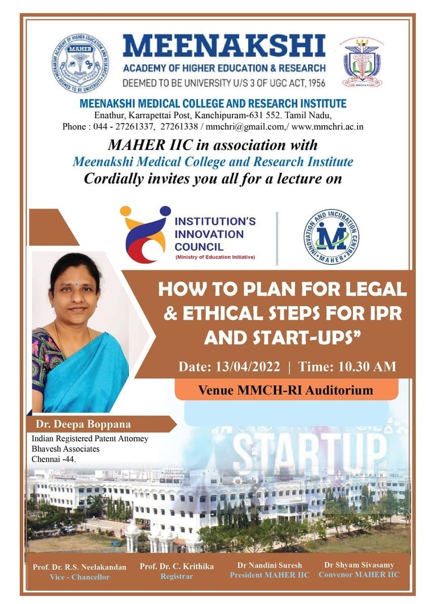 - Head of Incubation: Dr Nandini Suresh, Professor, Faculty of Dentistry, Meenakshi Ammal Dental college