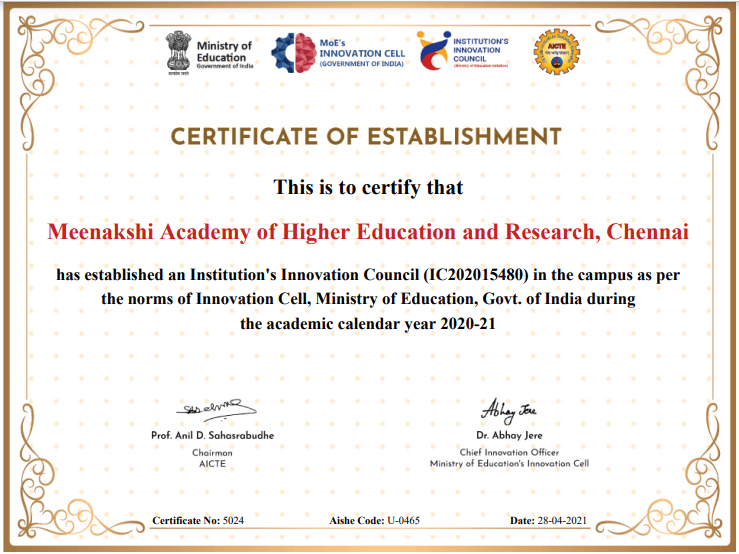 Ministry of Education (MoE), Govt. of India has established ‘MoE’s Innovation Cell (MIC)’ to systematically foster the culture of Innovation amongst all Higher Education Institutions (HEIs). The primary mandate of MIC is to encourage, inspire and nurture young students by supporting them to work with new ideas and transform them into prototypes while they are informative years.