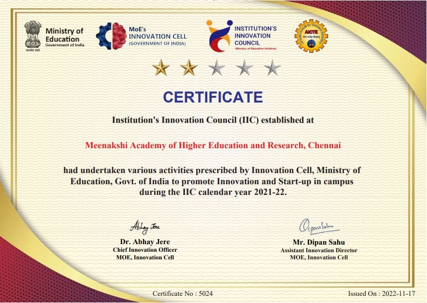 Ministry of Education’s Innovation Cell (MIC) Institution Innovation Council (IIC):