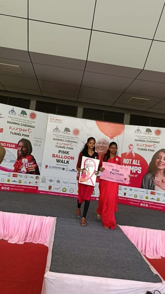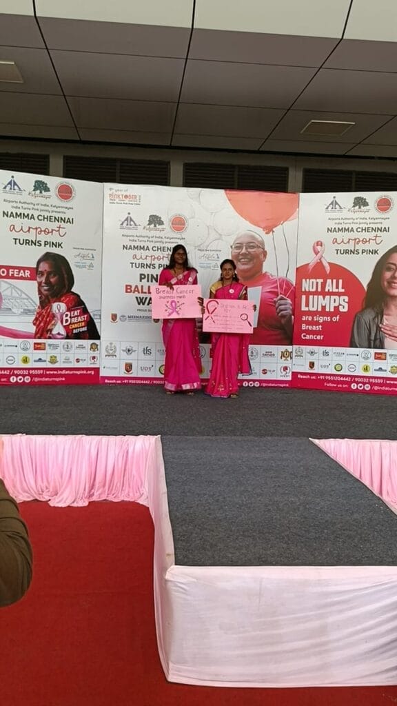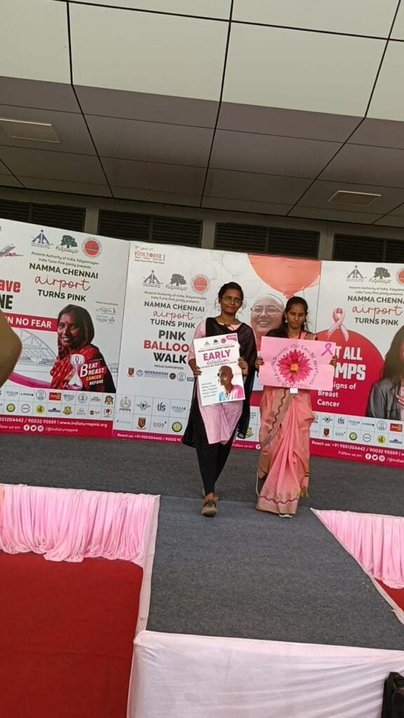 NSS of Faculty of Humanities and science, in collaboration with India Turns Pink , organized “Pink Saree Walk” a breast cancer awareness program at the Chennai airport on 17th October 2024, as part of the Pinktober initiative. Student volunteers from FHS participated in a vibrant “Pink Saree Walk,” symbolizing solidarity with breast cancer survivors and promoting awareness of breast health. The program was a success, raising awareness and encouraging proactive breast care measures.