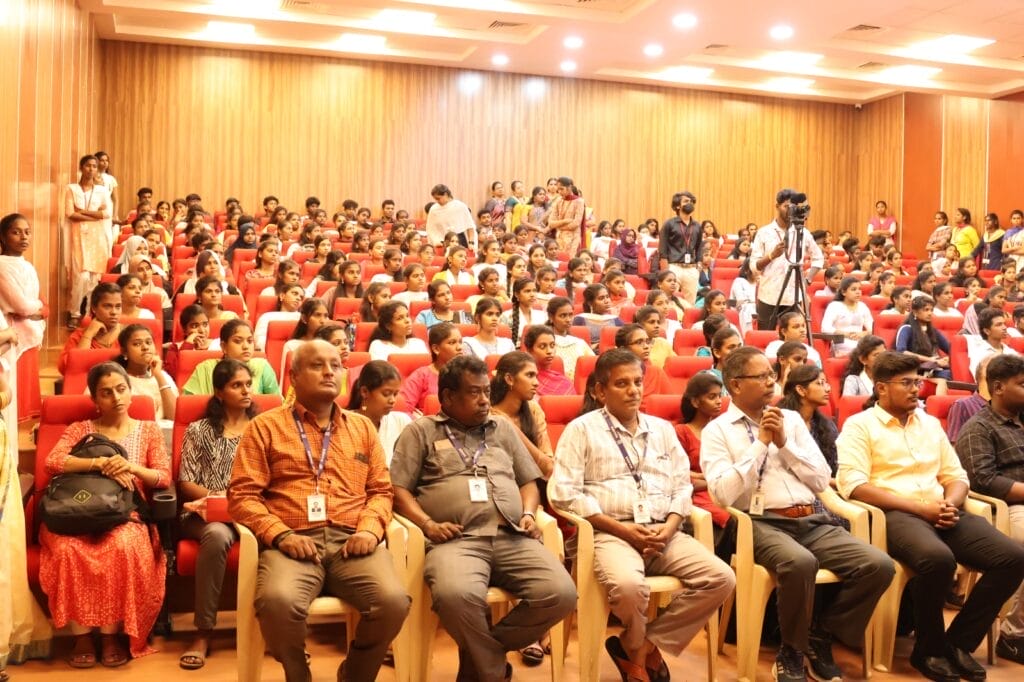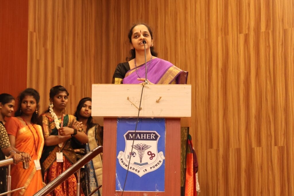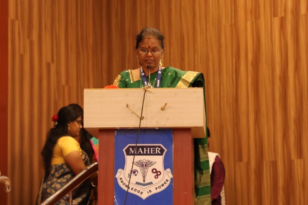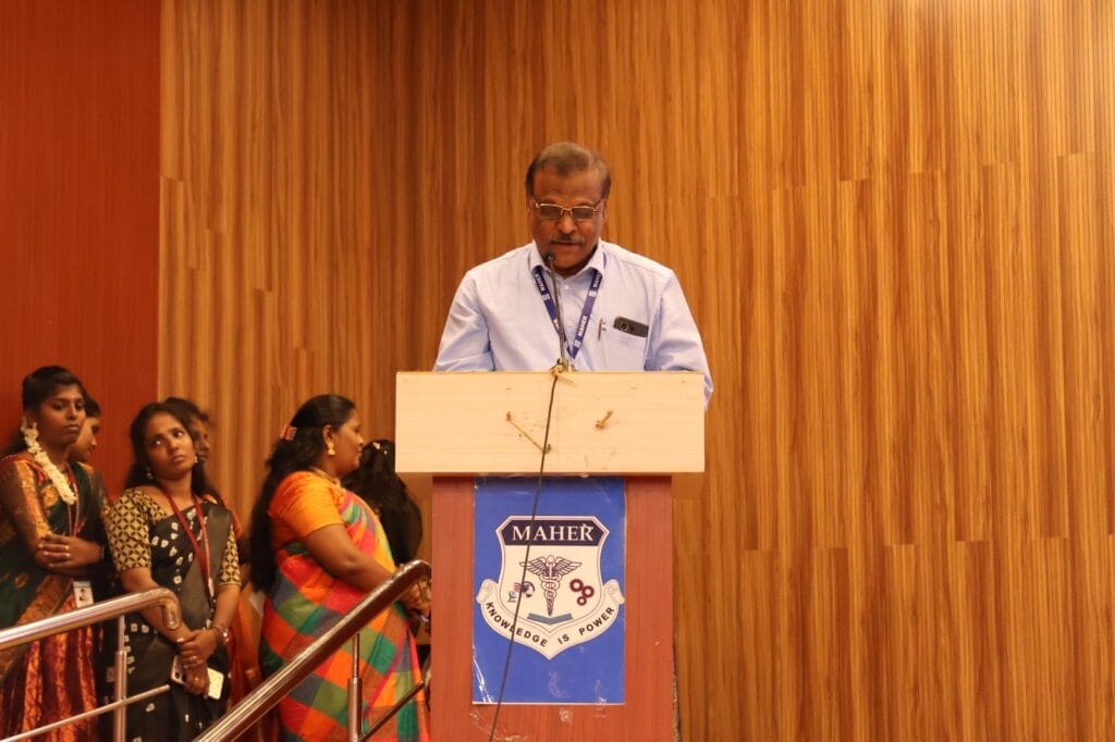 Dr. P. Sagayaraj, Dean of MAHER- FHS, delivered a heartfelt Welcome Address. His words of encouragement and guidance set a warm and inspiring atmosphere for the new students, emphasizing the values and mission of Institution. The ceremony proceeded with the honouring of distinguished guests and dignitaries. Dr. Krithika, the Pro Vice Chancellor gave the warmest greetings and shared a message that encapsulated the spirit and vision of our esteemed institution. Principal Dr. V. Shanthi’s introduction highlighted the resource person’s expertise and relevance to the students’ academic and professional growth.