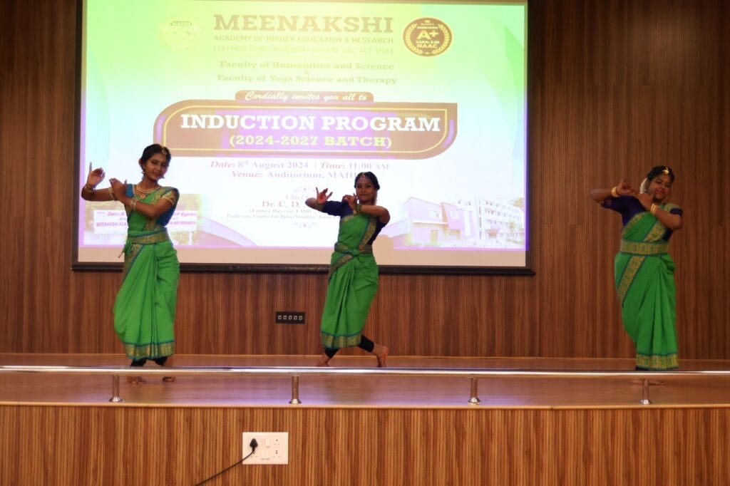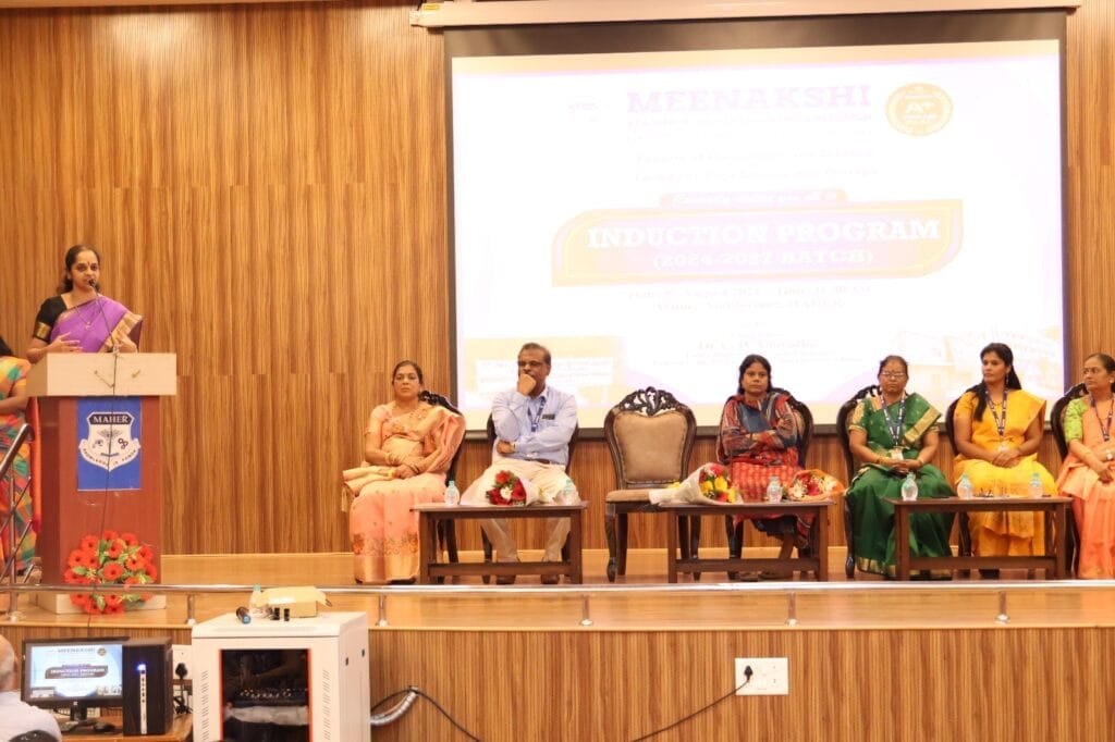 Faculty of Humanities and Science – Induction Programme for the batch 2024-2025 was successfully held on August 8th, 2024, at Meenakshi Academy of Higher Education and Research. The programme commenced with the traditional Thamizhthai Vazhthu, a tribute to Tamil culture and heritage. Following the Thamizhthai Vazhthu, the ceremonial lighting of the Kuthuvilakku was performed.