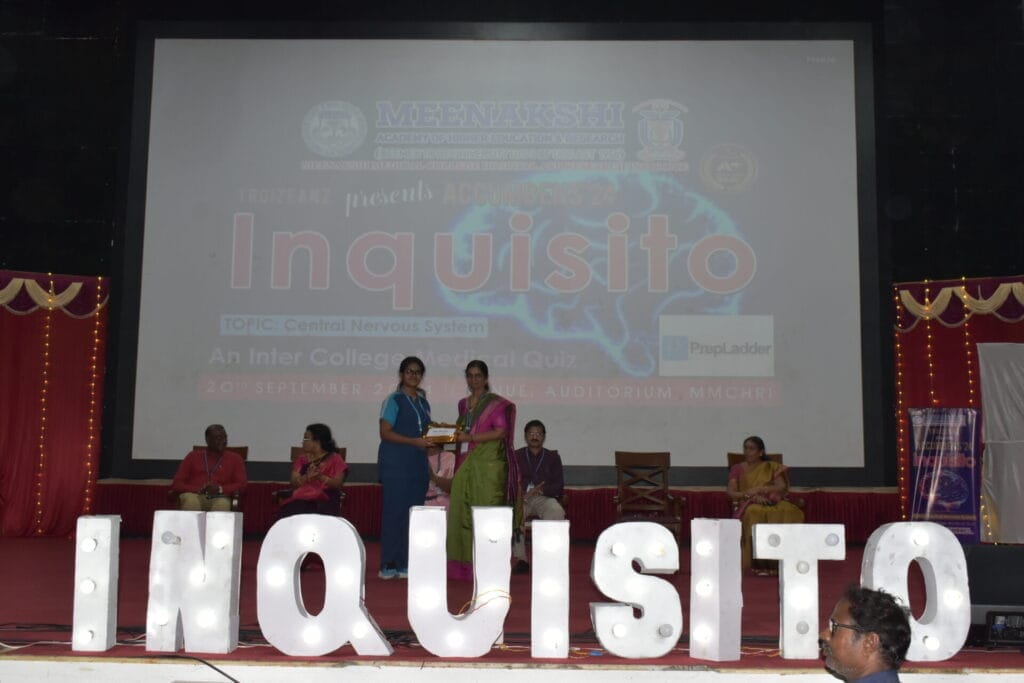 Meenakshi Medical College Hospital and Research Institute’s TROIZEANS presents ACCUMBENS’24 INQUISITO – An Inter College Medical Quiz Program with the topic of “Central Nervous System” on 20th September 2024.