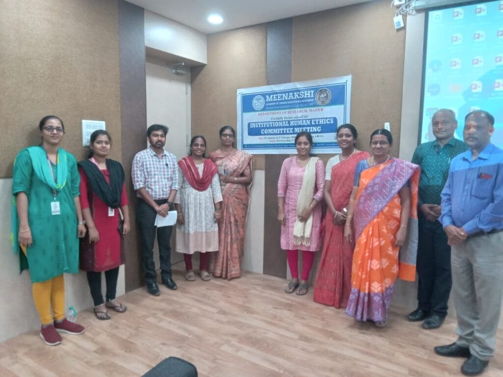 The Meenakshi Academy of Higher Education and Research held its Institutional Ethical Committee Meeting on January 31, 2024, and February 1, 2024. It was convened by the member secretary. A total of 37 proposals underwent scrutiny by committee members. These proposals were presented and thoroughly examined during the meeting’s proceedings.