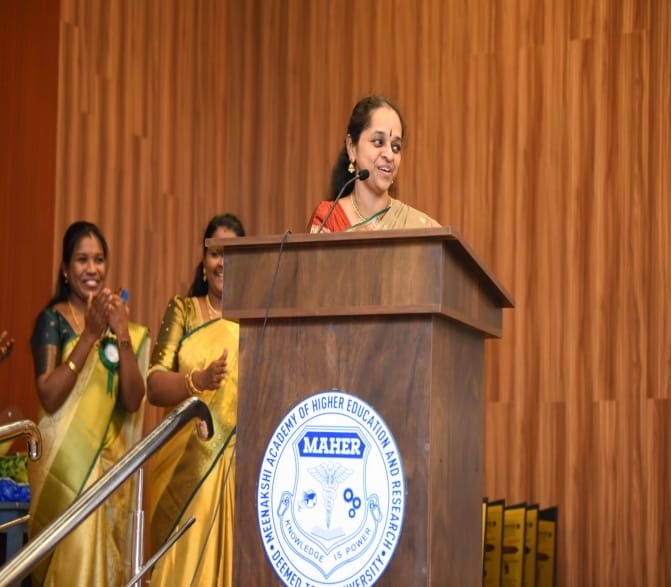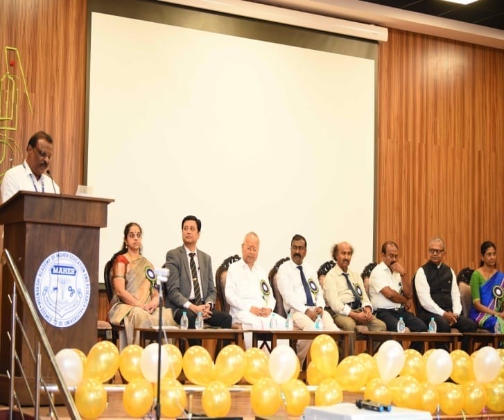 The inaugural session began with a floral tribute to Thiru. A.N. Radhakrishnan, Founder Chairman of MAHER, followed by the ceremonial lighting of the Kuthuvilakku by dignitaries. Dr. P. Sagayaraj, Dean, Faculty of Arts and Humanities, delivered the welcome address. The event was graced by the presence of Dr. C. Sridhar, Vice-Chancellor, Dr. C. Krithika, Pro Vice-Chancellor, and Dr. V. Sureka Varalkshmi, Registrar, MAHER.