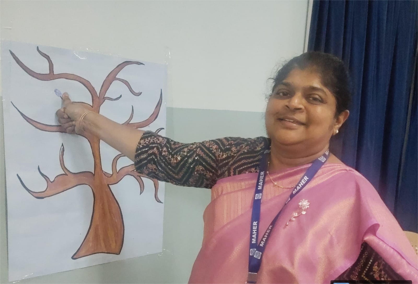 A customized Nurses Day tribute video, showcasing dynamic visuals and heartfelt messages in recognition of the unwavering dedication of nursing professionals, was presented. Additionally, a Thumb Impression activity was organized, providing an opportunity for students and faculty to symbolically honor the contributions of nurses by placing their thumb impressions on a tree-shaped poster, signifying growth, unity, and collective appreciation.